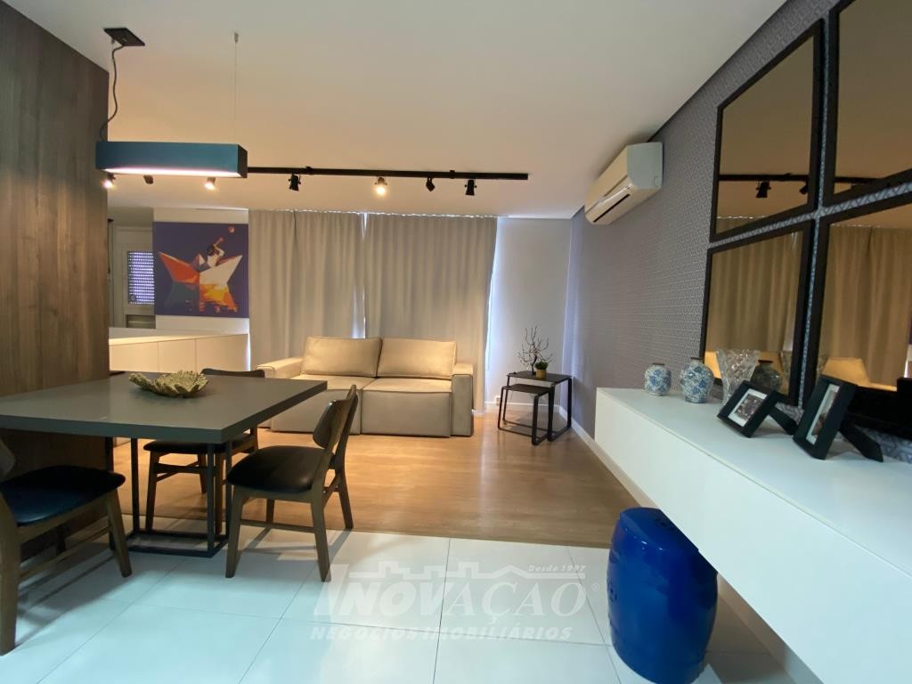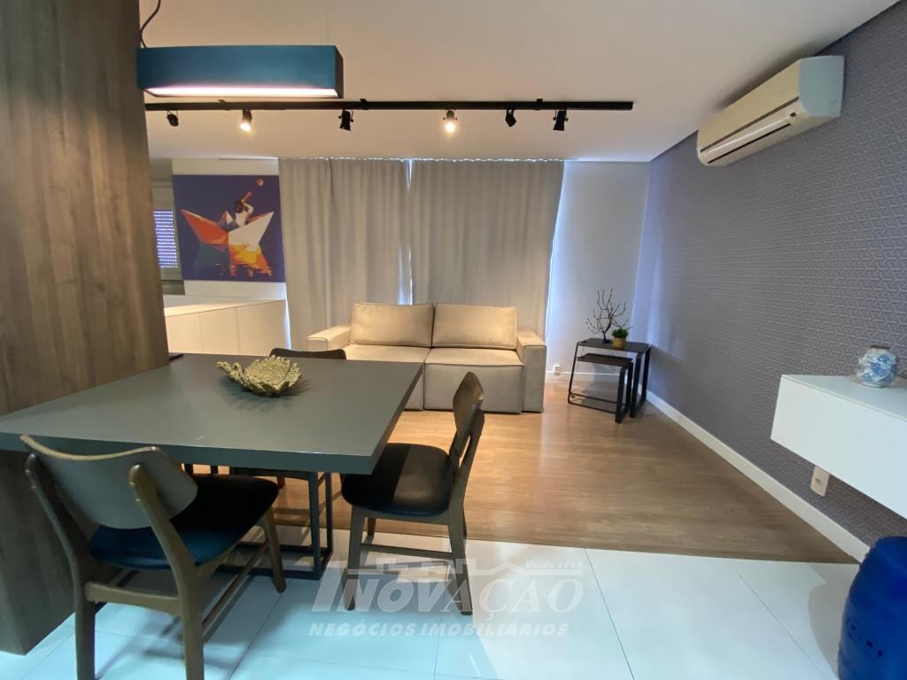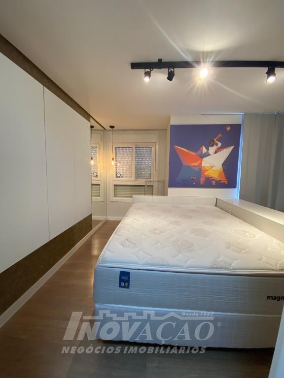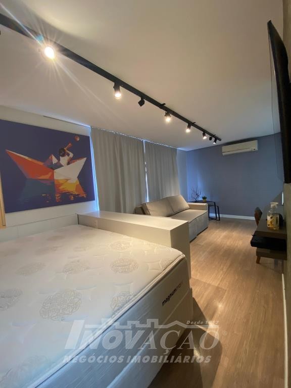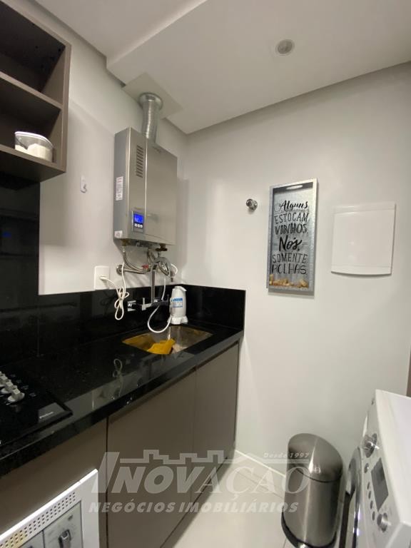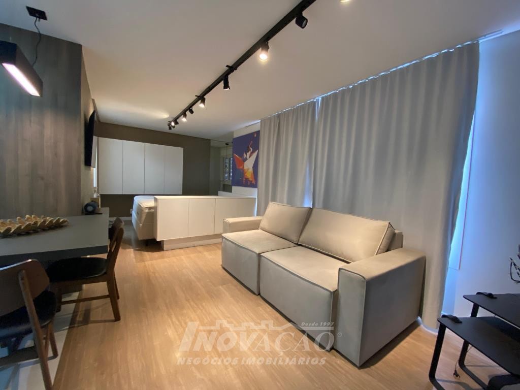 Inovação Negocios Imobiliarios, vende em Caxias do Sul, bairro Jardim do Shopping, apartamento mobiliado, com 1 dormitório, sala de estar, cozinha, lavanderia, banheiro social, 1 box de garagem, ótima localização, ar-condicionado, gás central, hidrômetro individual, projeto paisagístico, pórtico de entrada, guarita, lobby, 2 salões de festas com churrasqueira, sala de jogos, academia, estar de fogo, kids place, playground, mini-quadra.
