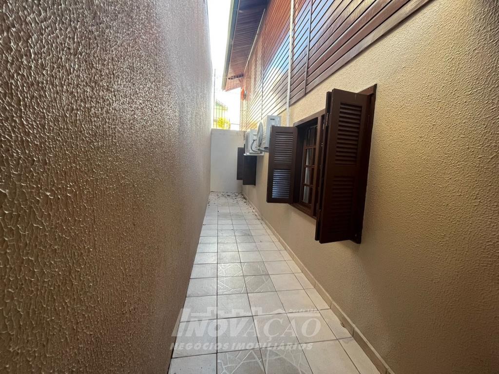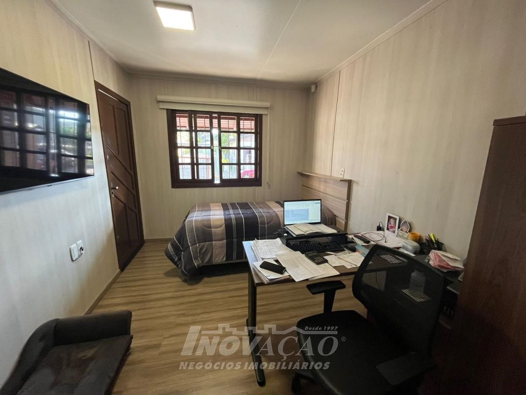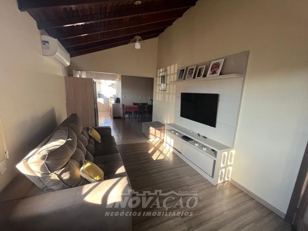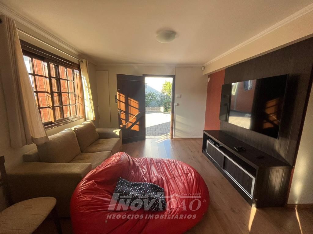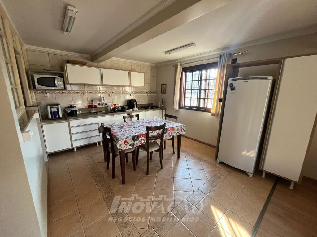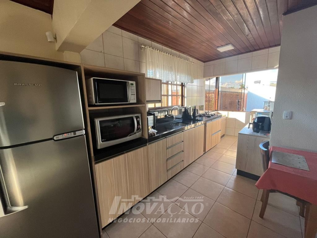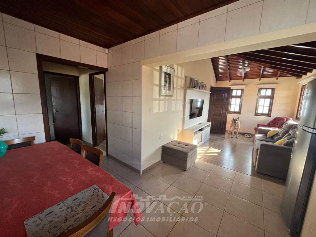 Inovação Negócios Imobiliários vende no bairro Desvio Rizzo casa semimobiliada com duas moradias. Pavimentos superior com 02 dormitórios, sala e cozinha integradas, banheiro social, área de serviço, churrasqueira, água quente, garagem para 01 carro e estacionamento para 02 carros, gás e energia elétrica individuais, alarme e cameras de segurança. Pavimento térreo com 02 dormitórios, sala e cozinha integradas, banheiro social, área de serviço, garagem para 02 carros com churrasqueira e equipada para salão de festas, estacionamento para 02 carros, pátio com árvores frutíferas, água quente, gás e energia elétrica individuais, alarme e cameras de segurança.