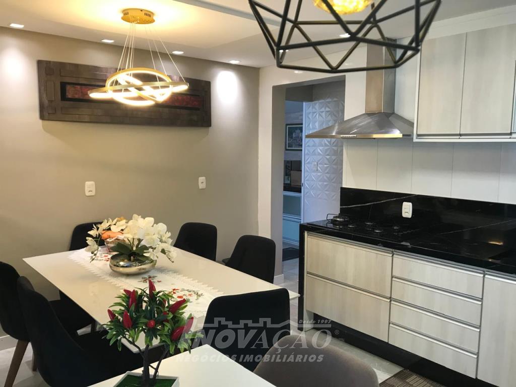 Imobiliária Inovação vende no Bairro Cidade Nova, ótima casa semi mobiliada, com três dormitórios, sala, cozinha, área de serviço, banheiro social, lavabo. Garagem para dois carros, churrasqueira, porão, pátio. Sistema de energia solar. quatro aparelhos de ár-condicionado. Toda a casa com rebaixe de gesso.