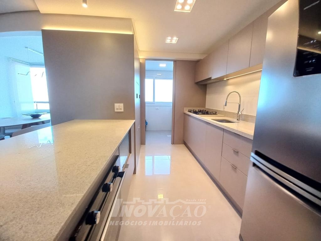 Inovação Negócios Imobiliários vende no bairro Panazzolo em Caxias do Sul apartamento mobiliado com 03 dormitórios sendo 01 suíte com closet. sala de estar, sala de jantar, cozinha americana com churrasqueira, banheiro social, área de serviço, 02 vagas de garagem e salão de festas.