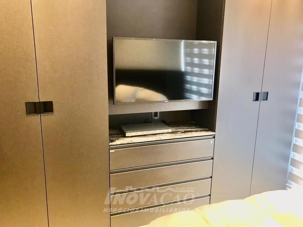 Inovação Negócios Imobiliários, aluga em Caxias do Sul-RS, loft novo padrão americano, em localização privilegiada na Universidade de Caxias do Sul, com 1 dormitório, sala de estar/cozinha com móveis esculpidos em granito verde Patagônia, churrasqueira a gás, banheiro social, totalmente mobiliado, com 1 box de garagem, com cortinas automatizadas, iluminação em led, rebaixe em gesso e agua quente.