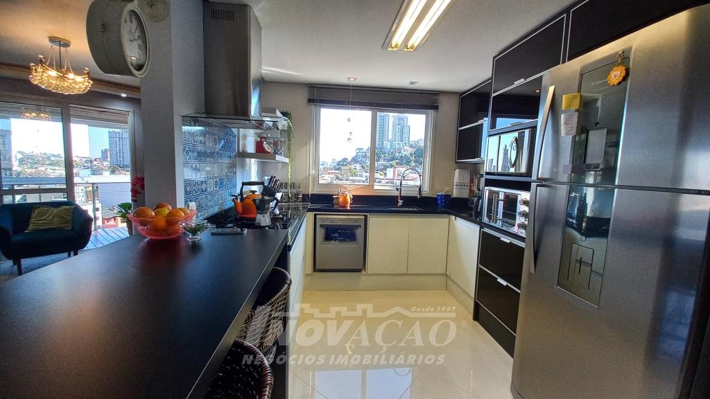 Inovação Negócios Imobiliários vende cobertura semimobiliada no bairro Petrópolis em Caxias do Sul com 03 dormitórios sendo 01 suíte com sacada, sala de estar com sacada, sala de jantar, cozinha americana, espaço gourmet com churrasqueira e terraço, banheiro social e área de serviço. A cobertura conta com calefação em todos os ambientes, aquecedor, piso térmico nos banheiros, vidros duplos e 03 vagas de garagem individuais. O prédio conta salão de festas e amplo hall com playground.