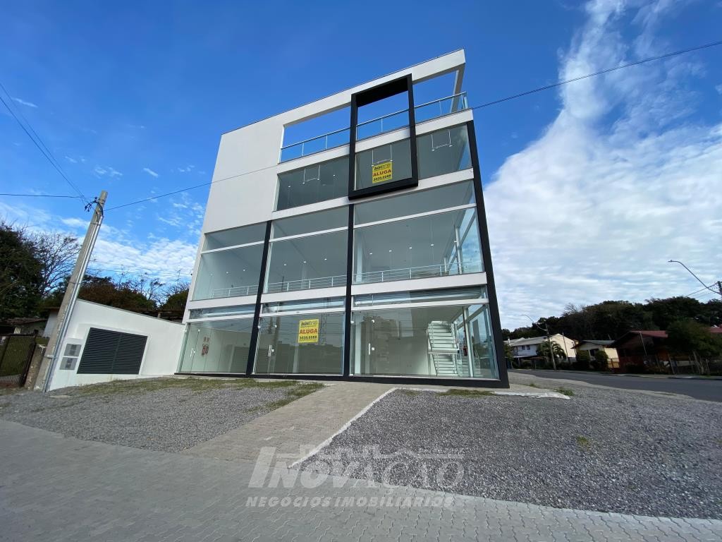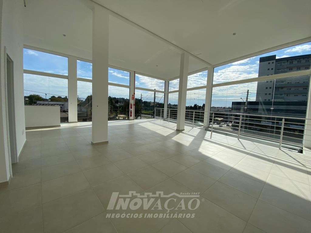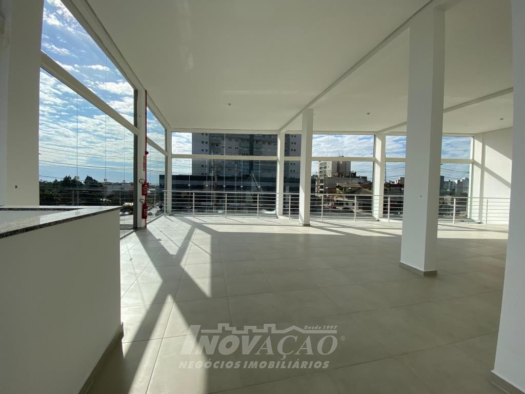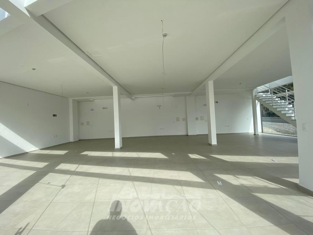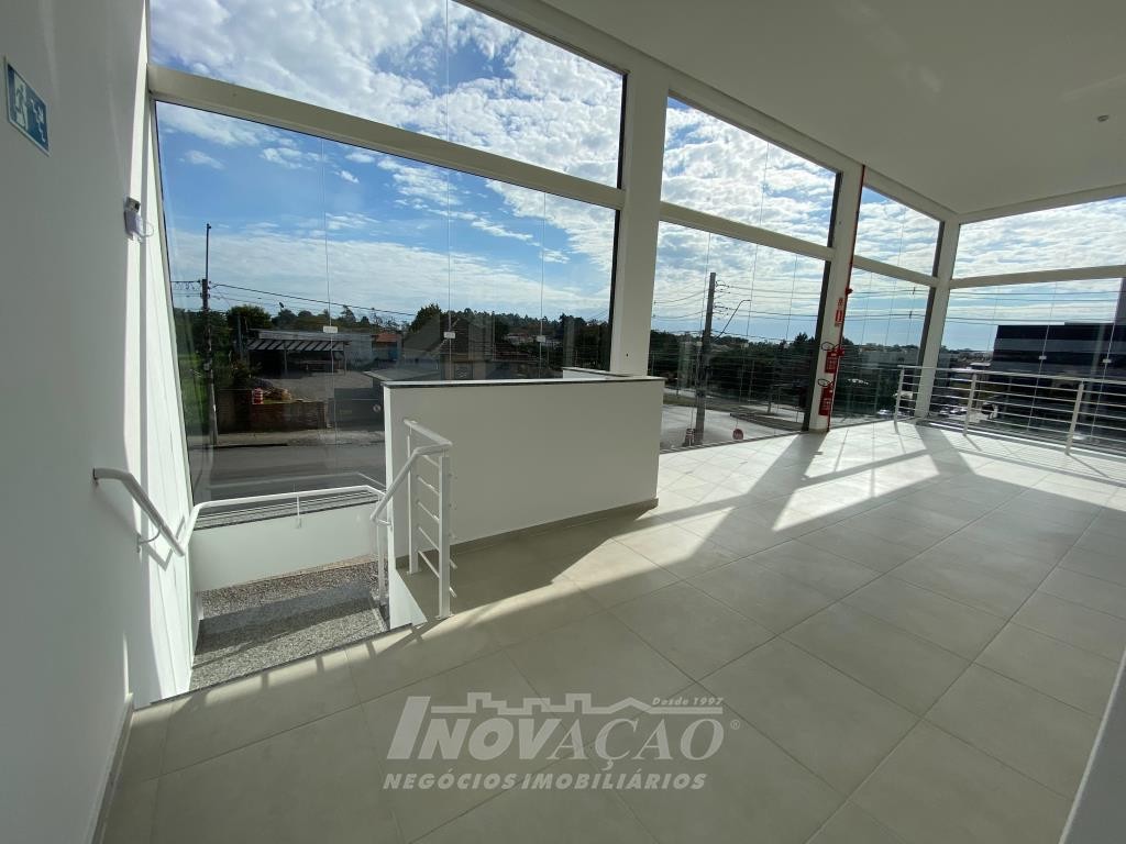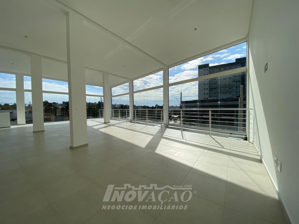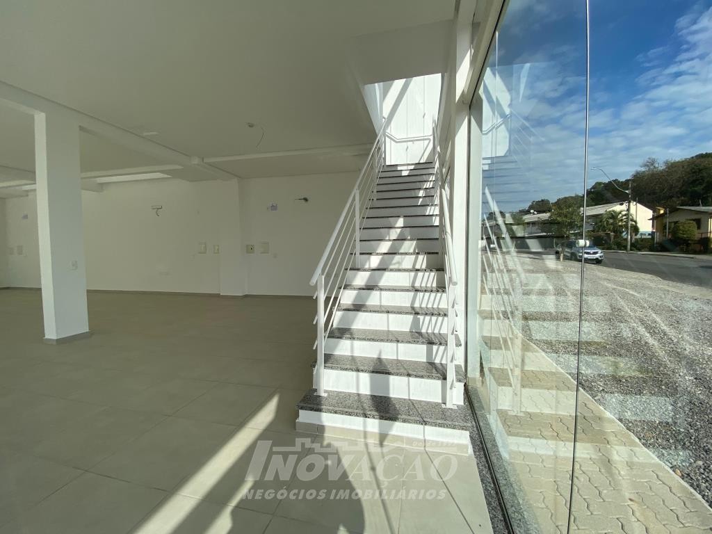 Inovação Negócios Imobiliários aluga em Caxias do Sul, RS, no bairro Desvio Rizzo Sala Térrea de esquina em via de Grande fluxo com fachada em vidro, Piso em Porcelanato, 3 Banheiros, Mezanino, cortinas de ferro automatizada Posição Solar oeste, Metragem 323m² .