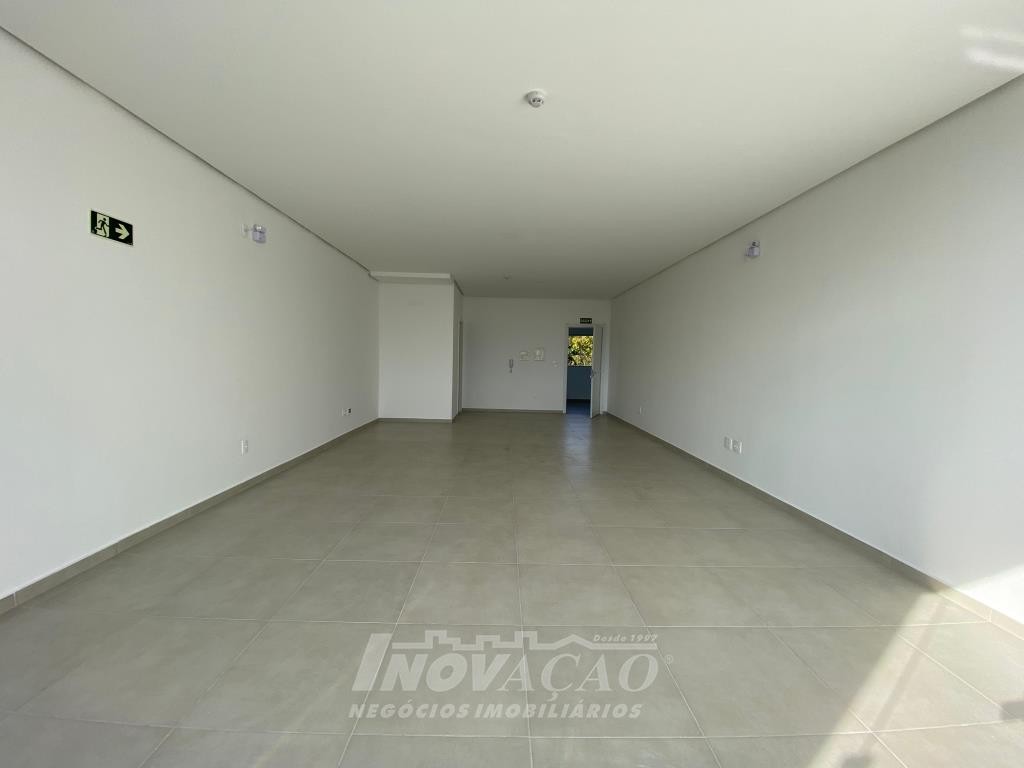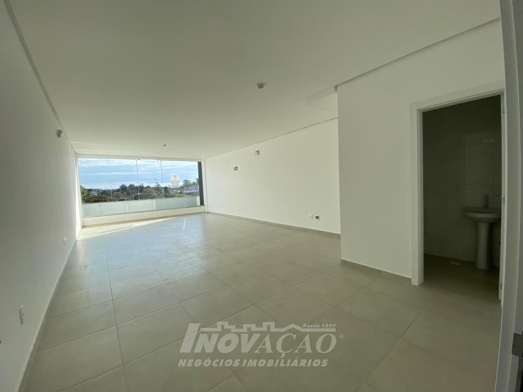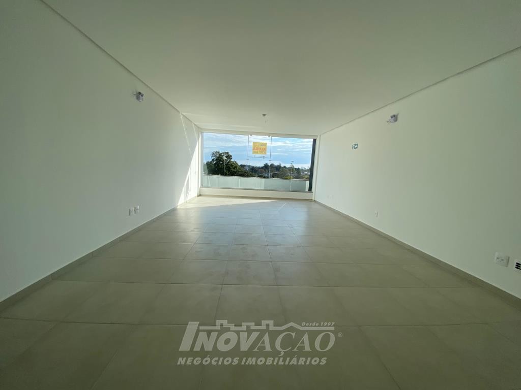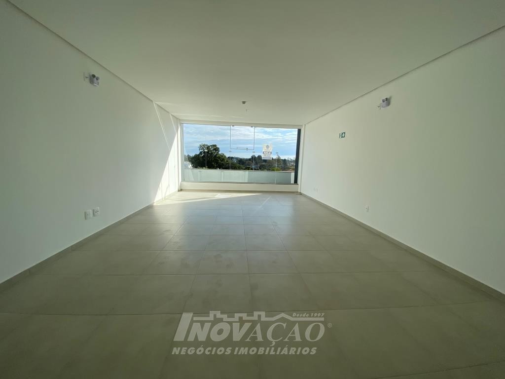 Inovação Negócios Imobiliários aluga em Caxias do Sul, RS, no bairro Desvio Rizzo Sala Aérea com 55 m² privativos, em via de Grande fluxo com fachada em vidro, Piso em Porcelanato, 1 Banheiros, Elevador, Posição Solar oeste.
