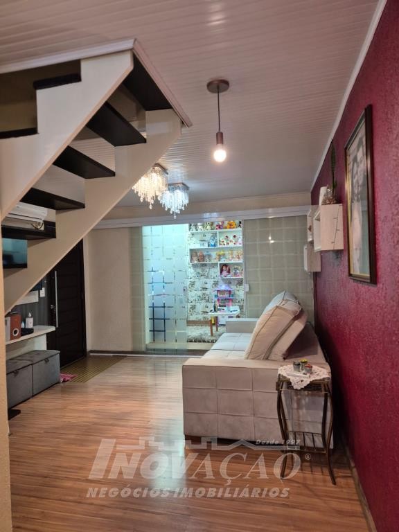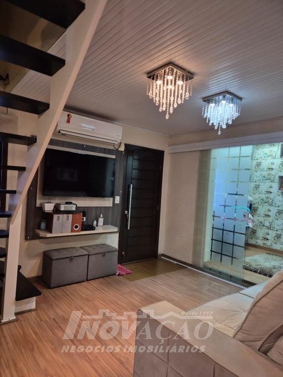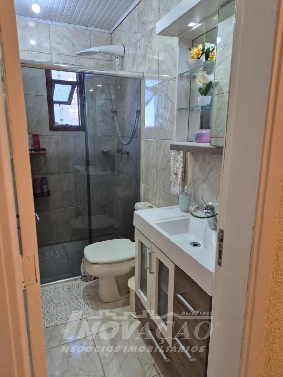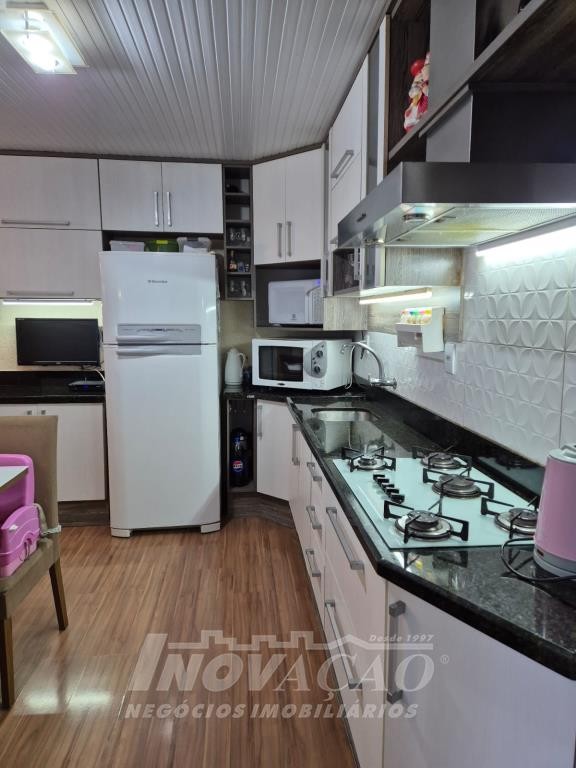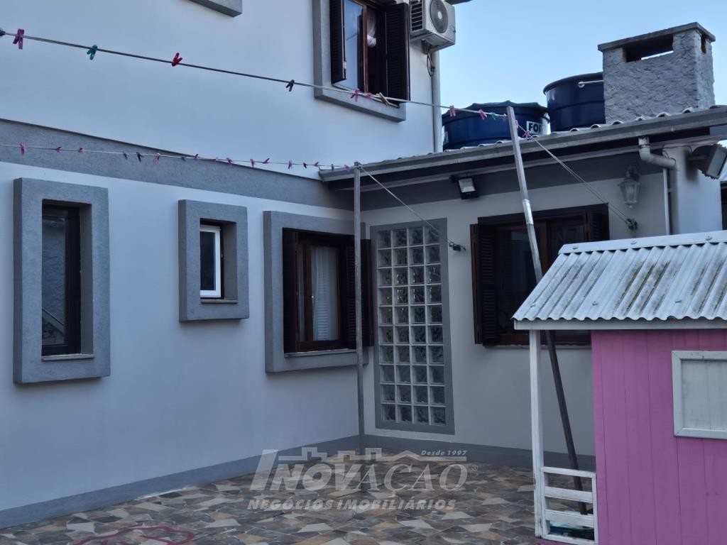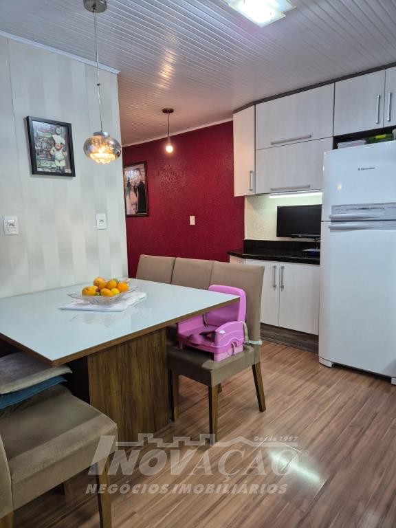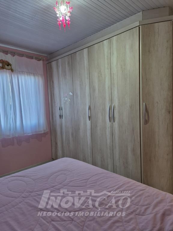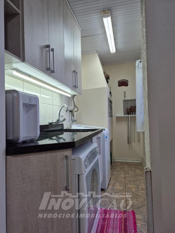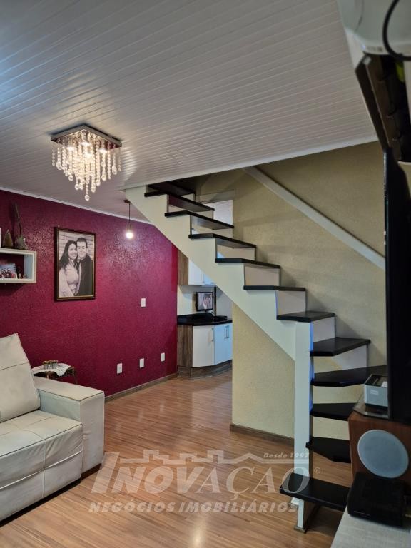 Inovação Negócios Imobiliários Ltda vende casa dois pisos com dois dormitórios , sala de estar e jantar, cozinha, área de serviço, churrasqueira, dois banheiros, piso em laminado e cerâmica, água quente, gás central, patio e duas garagens. Próximo a escolas, paradas de ônibus, farmácias, padaria, supermercado, quadras de esportes, e a segundos do Centro. Obs: À vista pode se estudar um desconto e aceita permuta por apartamento no Panazzolo ou outros bairros a combinar, com três dormitórios sendo um suíte, água quente, sacada ou terraço e churrasqueira, garagem dois automóveis. A casa da frente está inclusa no mesmo valor.