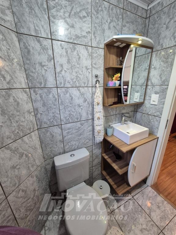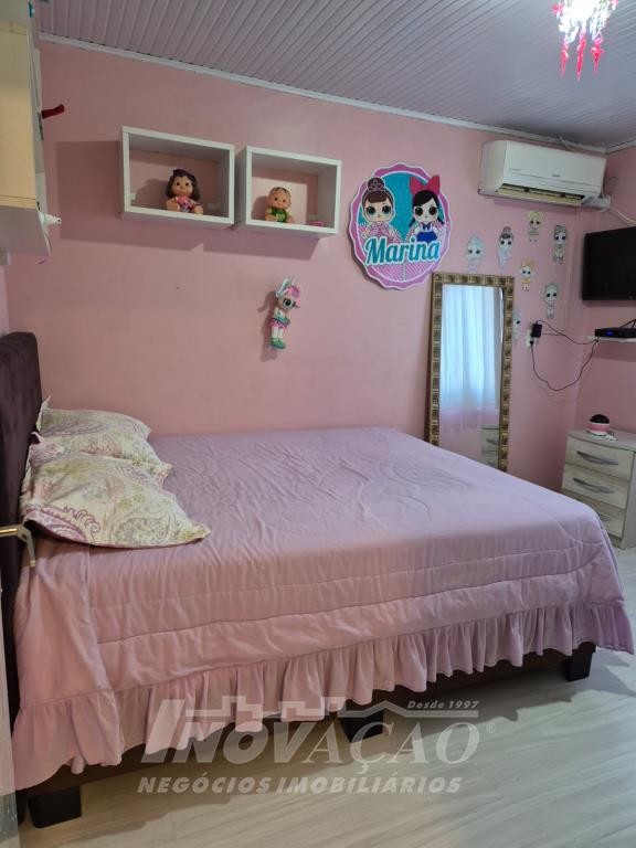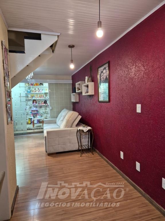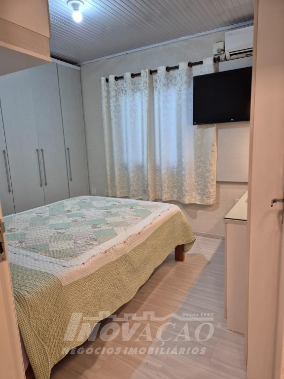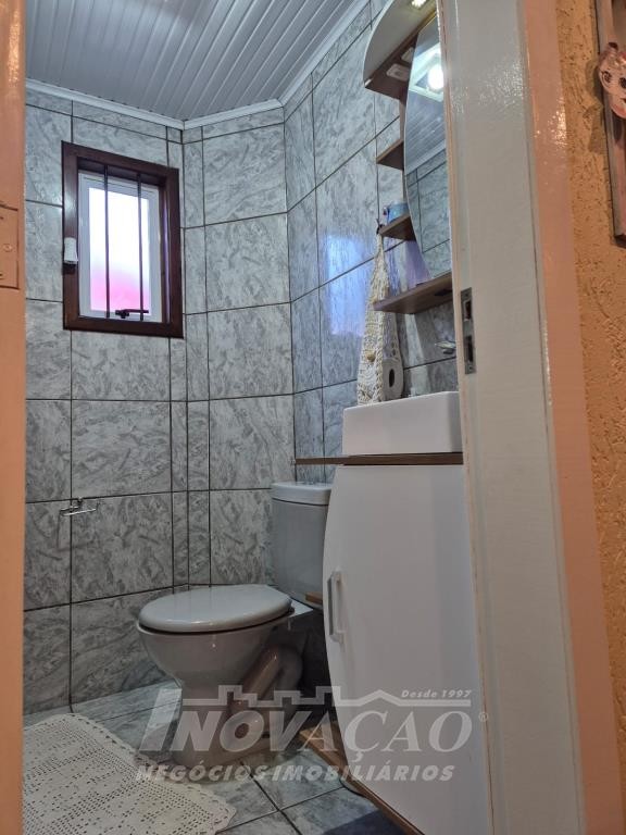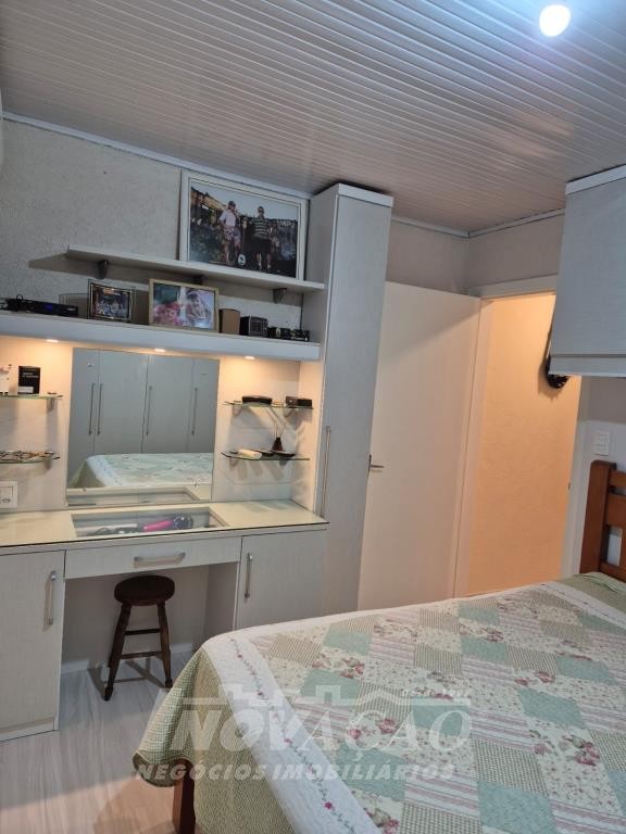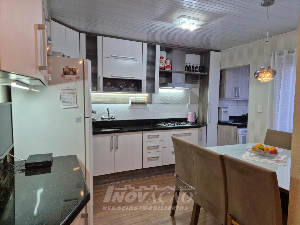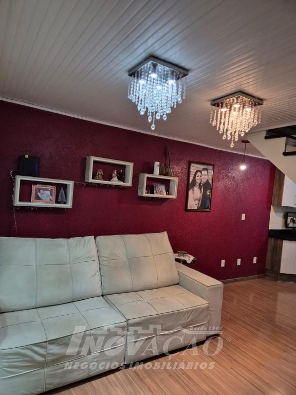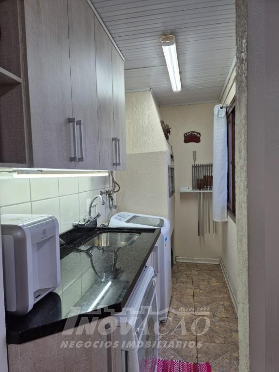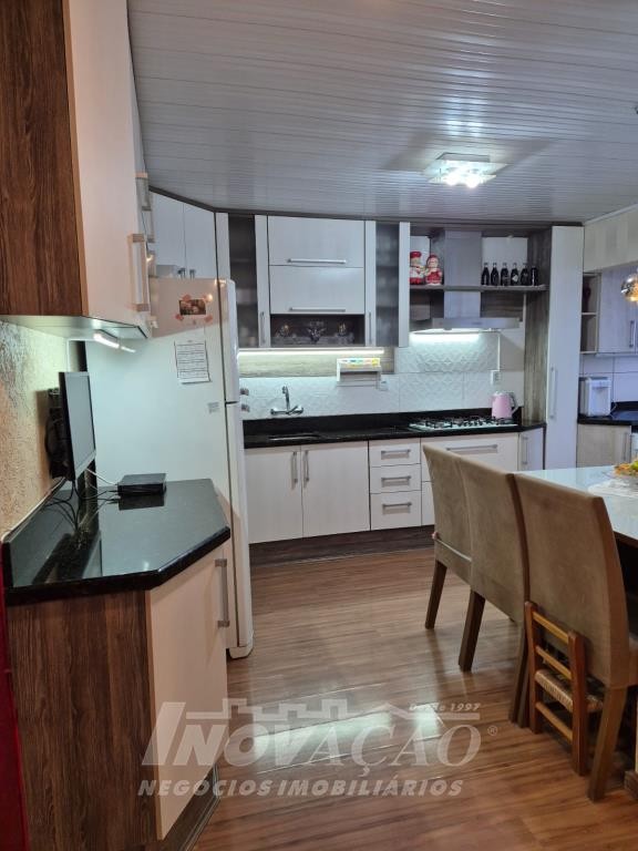 Inovação Negócios Imobiliários Ltda vende casa dois pisos com dois dormitórios , sala de estar e jantar, cozinha, área de serviço, churrasqueira, dois banheiros, piso em laminado e cerâmica, água quente, gás central, patio e duas garagens. Próximo a escolas, paradas de ônibus, farmácias, padaria, supermercado, quadras de esportes, e a segundos do Centro. Obs: À vista pode se estudar um desconto e aceita permuta por apartamento no Panazzolo ou outros bairros a combinar, com três dormitórios sendo um suíte, água quente, sacada ou terraço e churrasqueira, garagem dois automóveis. A casa da frente está inclusa no mesmo valor.