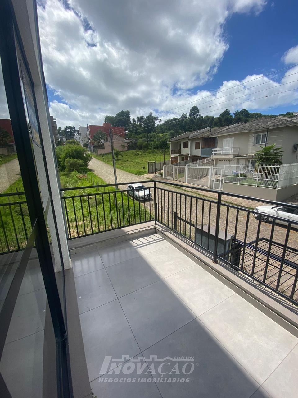 Inovação negócios Imobiliários Vende em Caxias do Sul, RS, no bairro Vinhedos, Sobrado triplex com entrada individual com dois dormitórios, sala, cozinha, área de serviço, sacada com churrasqueira, lavabo, banheiro social, duas vagas de garagem coberta, deposito. A posição solar é Oeste, Leste.