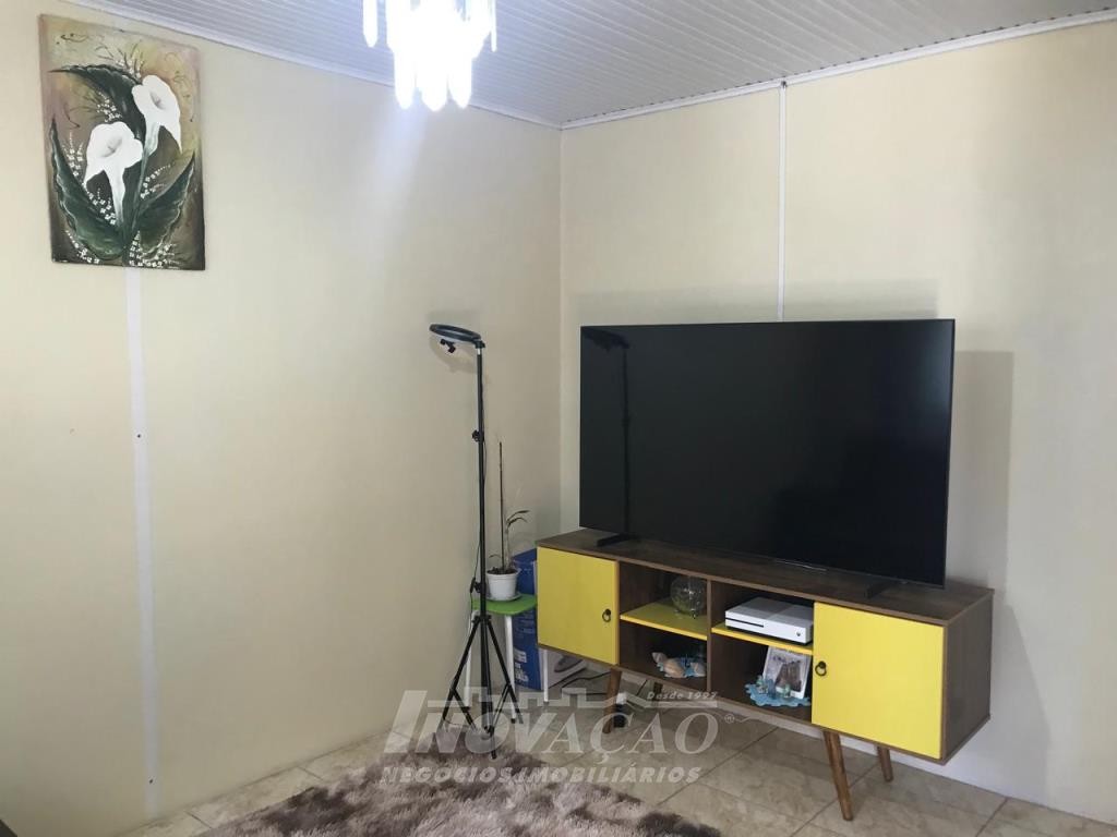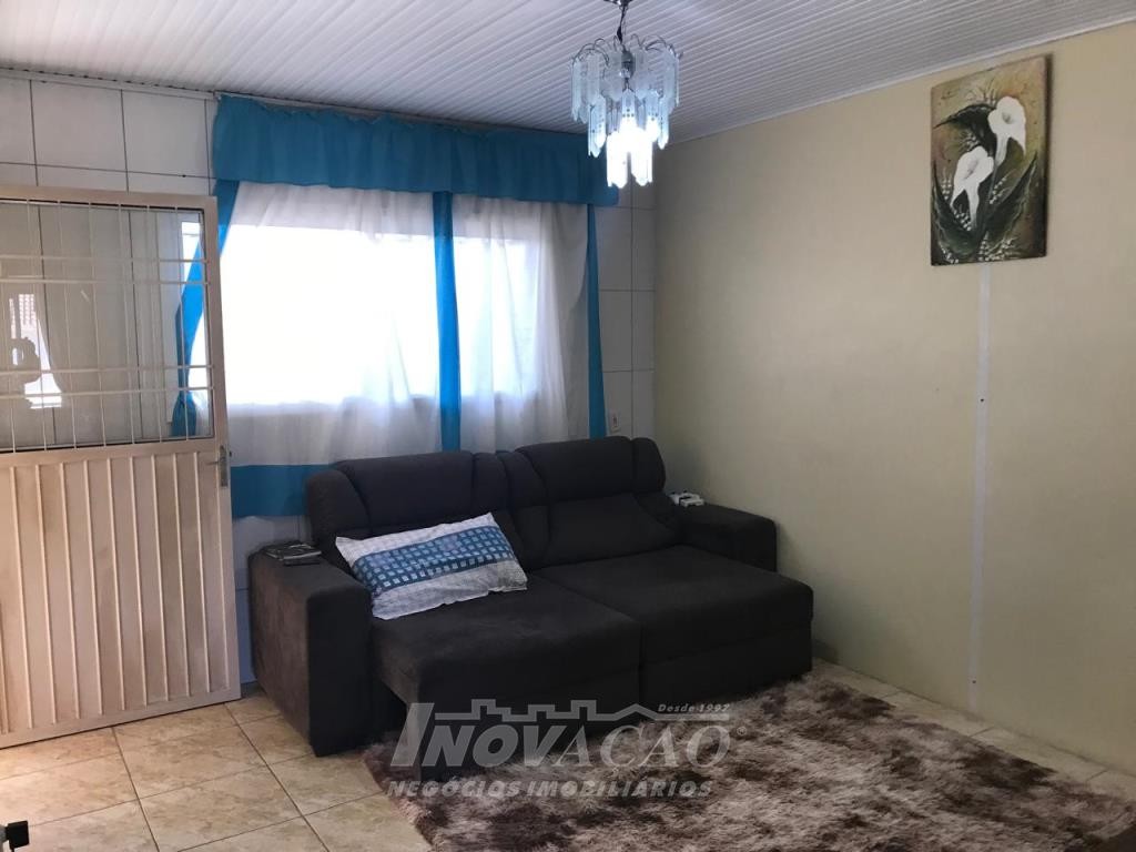Imobiliária Inovação, vende em Caxias do Sul, bairro Charqueadas, sobrado com dois dormitórios, sala, cozinha, sacada, banheiro social, lavabo, garagem para dois carros. Frente leste.