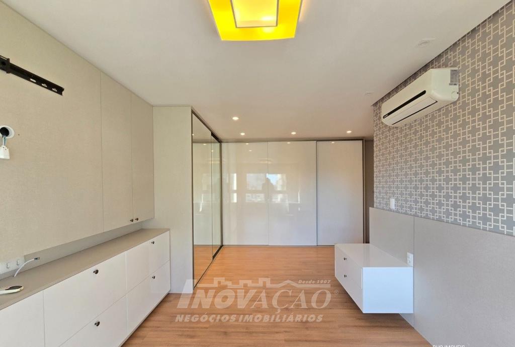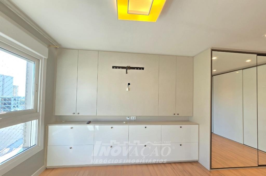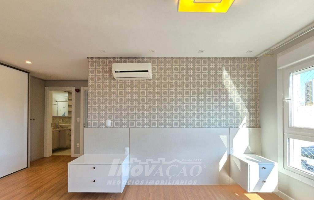 Imobiliária Inovação vende em Caxias do Sul, Bairro São Pelegrino, apartamento semi mobiliado com três suítes, sala, cozinha, sacada fechada sistema reiki, split , lavabo churrasqueira, espera para calefação, esquadrias com vidro duplo, Salão de festas, brinquedoteca, elevador, jardim, portaria, Próximo a colégio, mercado, shopping.