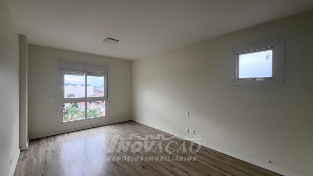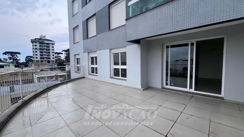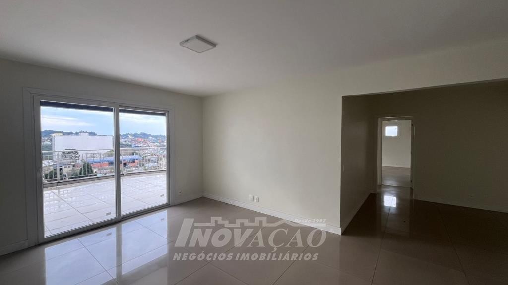 Imobiliária Inovação vende apartamento no Bairro Panazzolo com 3 dormitórios, sendo 1 suíte, sala 2 ambientes com sacada e terraço, lavabo, banheiro social, cozinha com churrasqueira, área de serviço, esperas para água quente e split, pisos porcelanato e laminado, esquadrias em pvc com espera para vidros duplos e automação. Prédio com 2 elevadores, gás central, salão de festas e hall de entrada mobilados e decorados. Amplo terraço de 37m² mais 130m² no imóvel, totalizando 167m² de área privativa.