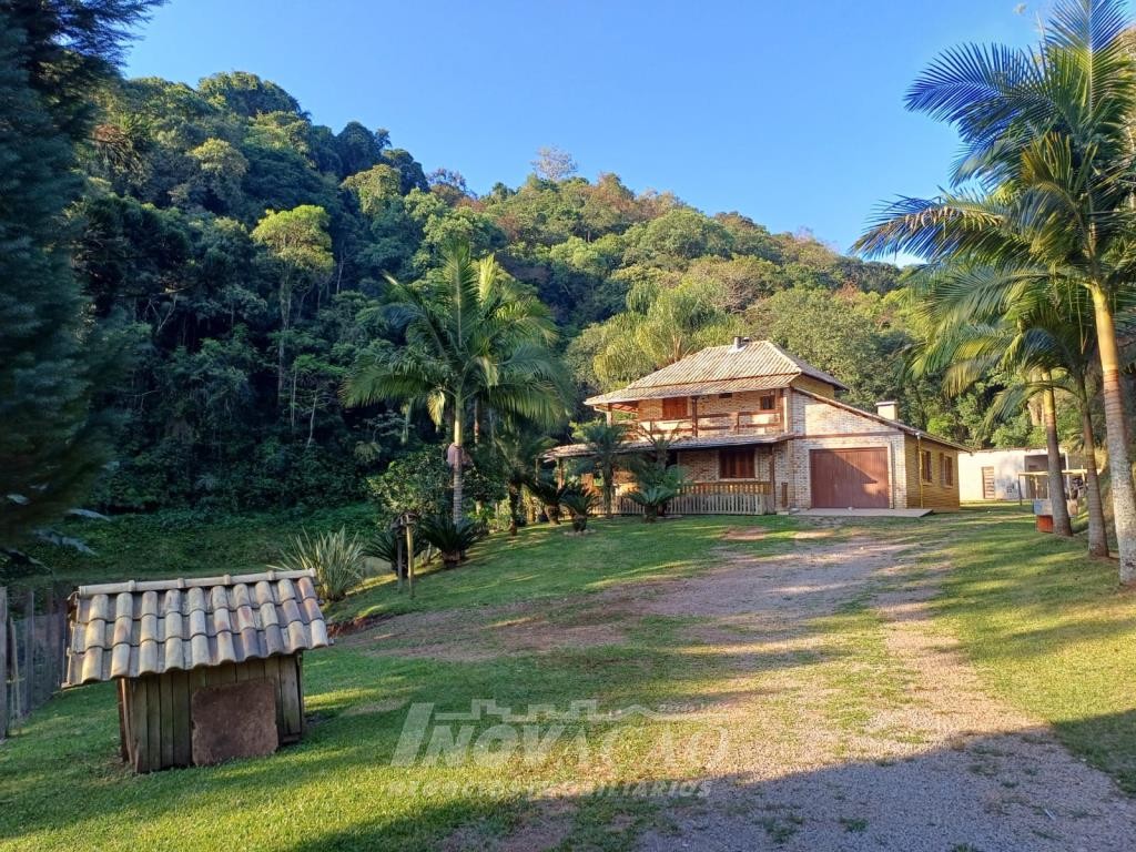 Inovação Negocios Imobiliarios, vende em Caxias do Sul, distrito de Fazenda Souza, chacara com 2,5 hectares, contendo casa de alvenaria com 02 pavimentos, com 189,24 m2, com 04 dormitórios sendo 01 suite com ar condicionado, sala e cozinha amplas, 03 banheiros, area de serviço, salão de festas, agua quente, quiosque, piscina, patio grande, alarme, cameras, portão eletronico na entrada da chacara. Acesso todo asfaltado até o portão de entrada. Localizada a 15 Km do centro de Caxias. Tem agua da Samae além de poço com vertente.