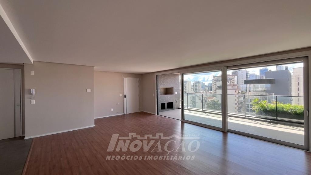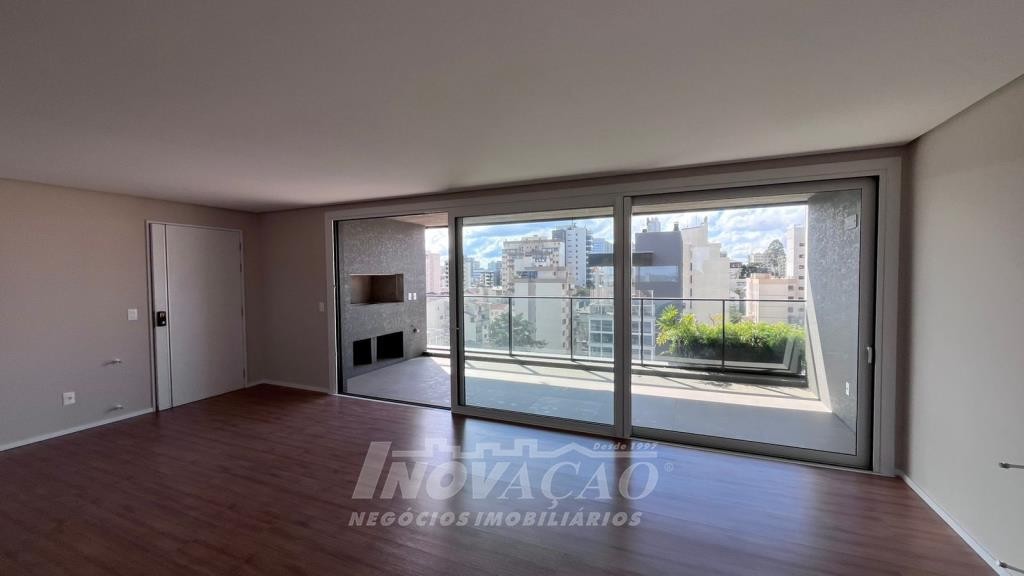 Imobiliária Inovação, vende apartamento no Bairro Exposição, com 3 suítes (1 com closet), amplo living integrado a cozinha em conceito aberto, ampla varanda gourmet com peitoril de vidro, lavabo, área de serviço separada e 3 vagas de garagem. Vidro duplo em todo apartamento, esperar para split e calefação. O empreendimento conta com ampla área de lazer com salão de festas, espaço kids, espaço play, academia, spa, quiosque gourmet externo, playground, mini quadra de esportes, espaço pet e amplo terraço condominial com 600 metros de espaços de estar e convivência com árvores frutíferas.