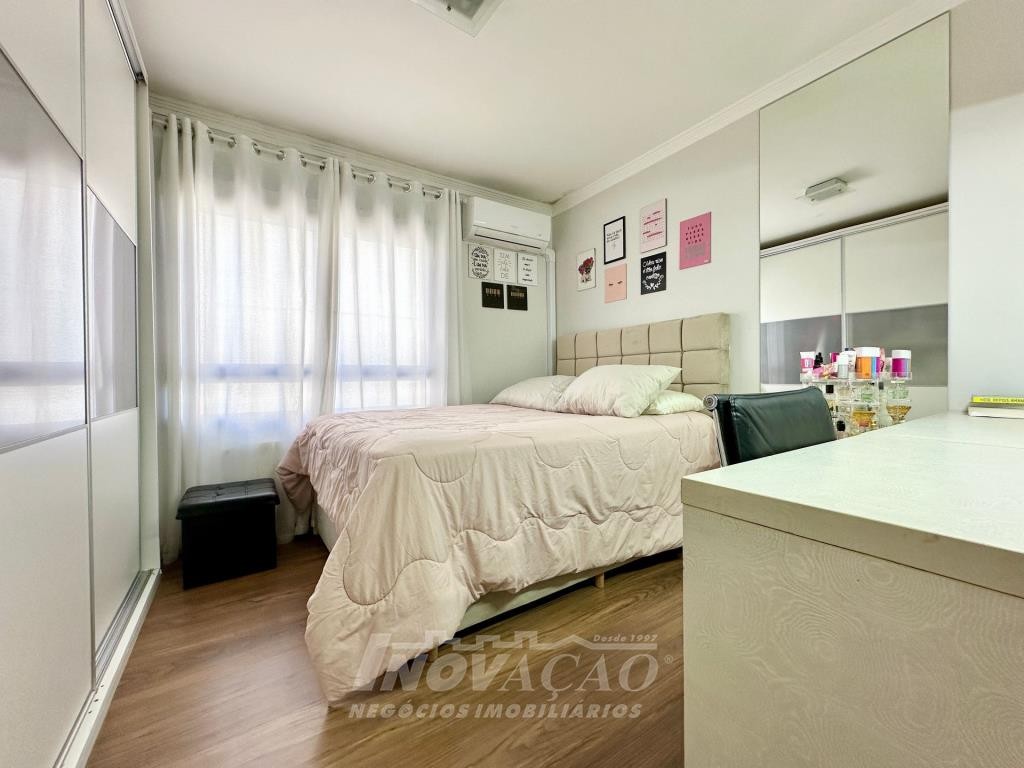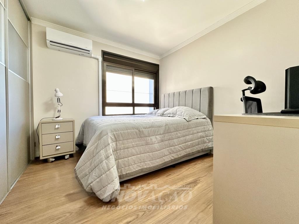 Imobiliária Inovação vende apartamento mobiliado no Bairro Exposição, com 3 dormitórios, sendo uma suíte, 2 banheiros, sala, cozinha, área de serviço com churrasqueira, ar condicionado e duas vagas de garagem.