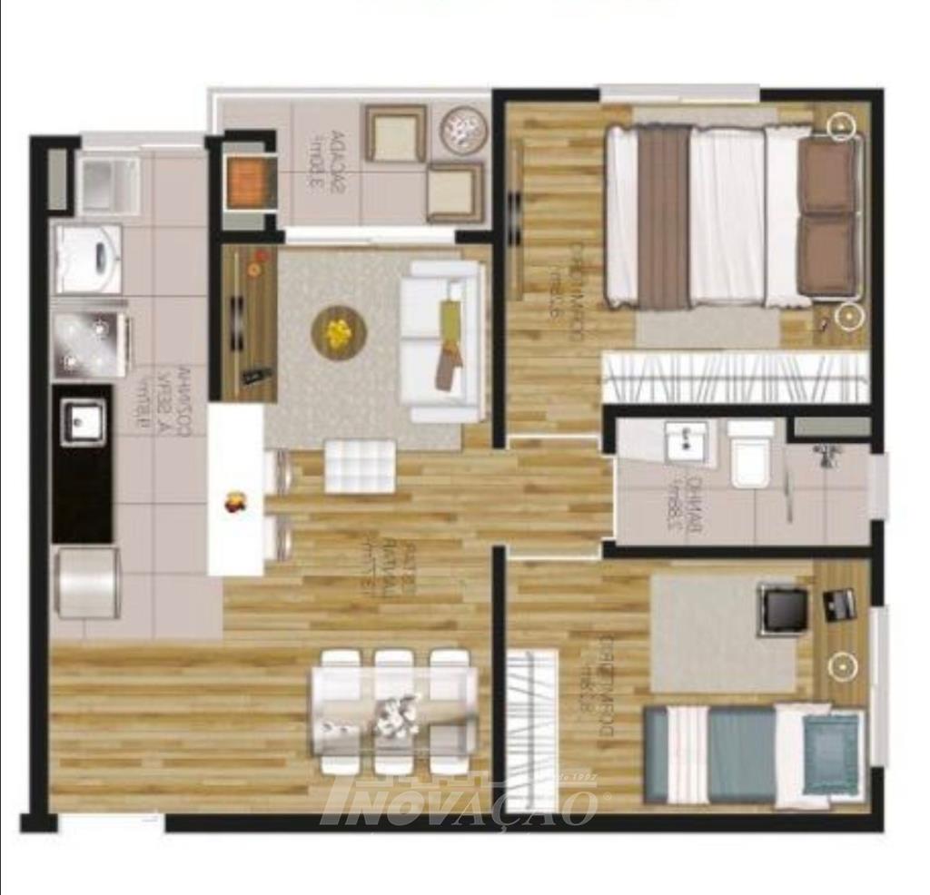 Inovação Negócios Imobiliários vende no bairro Panazzolo, apartamento novo com dois dormitórios, sala, sacada com churrasqueira, cozinha integrada com a área de serviço, banheiro social e um box de garagem. O condomínio oferece duas piscinas, quiosques com churrasqueiras, dois salões de festas, espaço gourmet, academia, sala de jogos, quadra de esportes, sala de cinema, sala de massagem, payground e espaço pet.