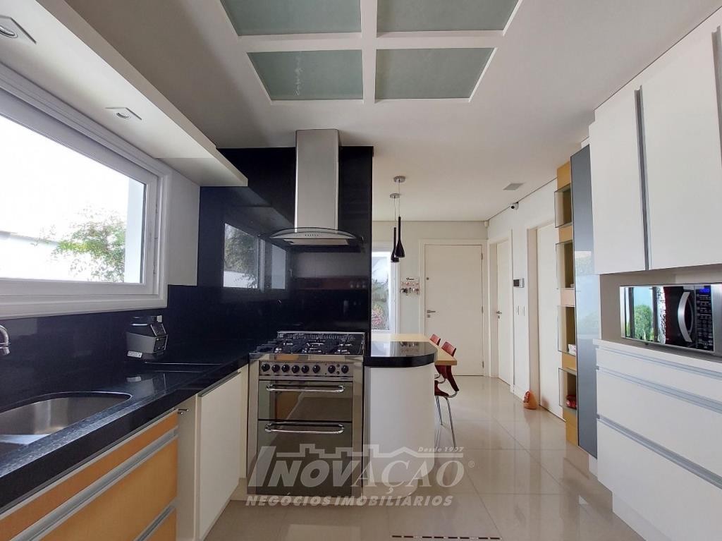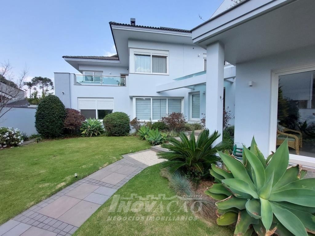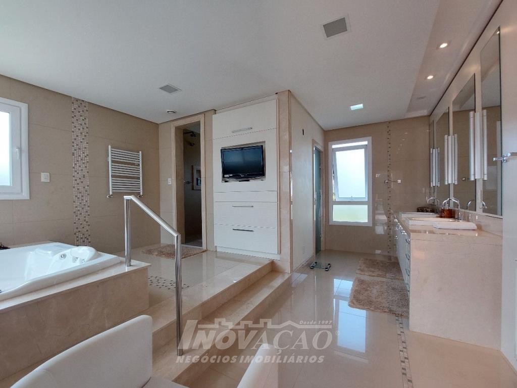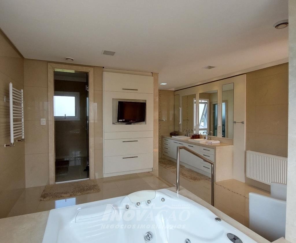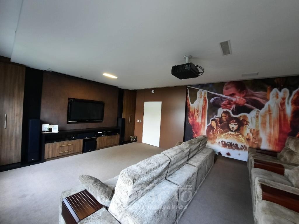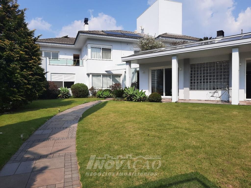 Imobiliária Inovação venda casa com 4 dormitórios, sendo 1 suíte e 1 suíte máster com closet duplo, banheiro com jacuzzi, cuba e chuveiros duplos. Amplo estar social integrado com jantar e sala TV com lareira, lavabo, hall de entrada, escritório, sala de cinema e 2 banheiros sociais. Garagem para 4 carros, espaço gourmet, cozinha copa e área de serviço. Área privativa: 552,00m².