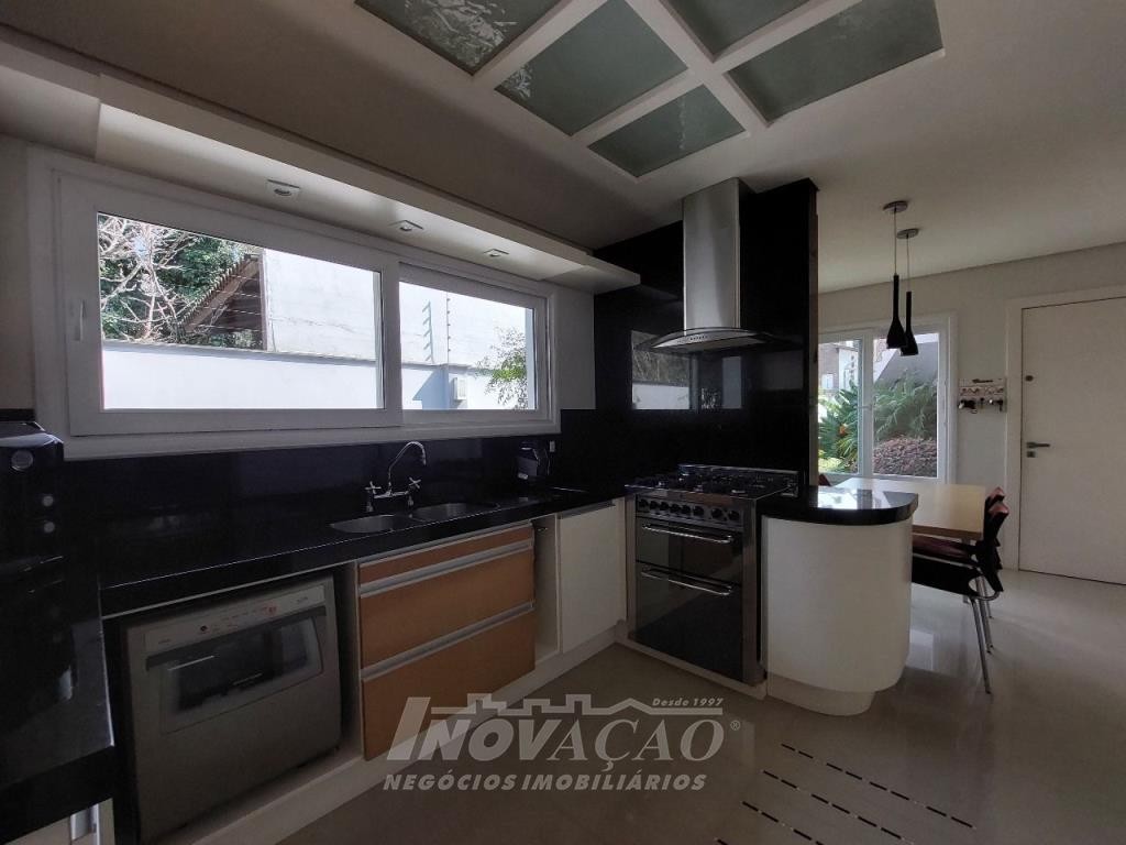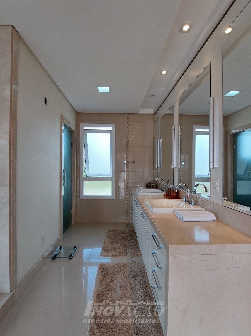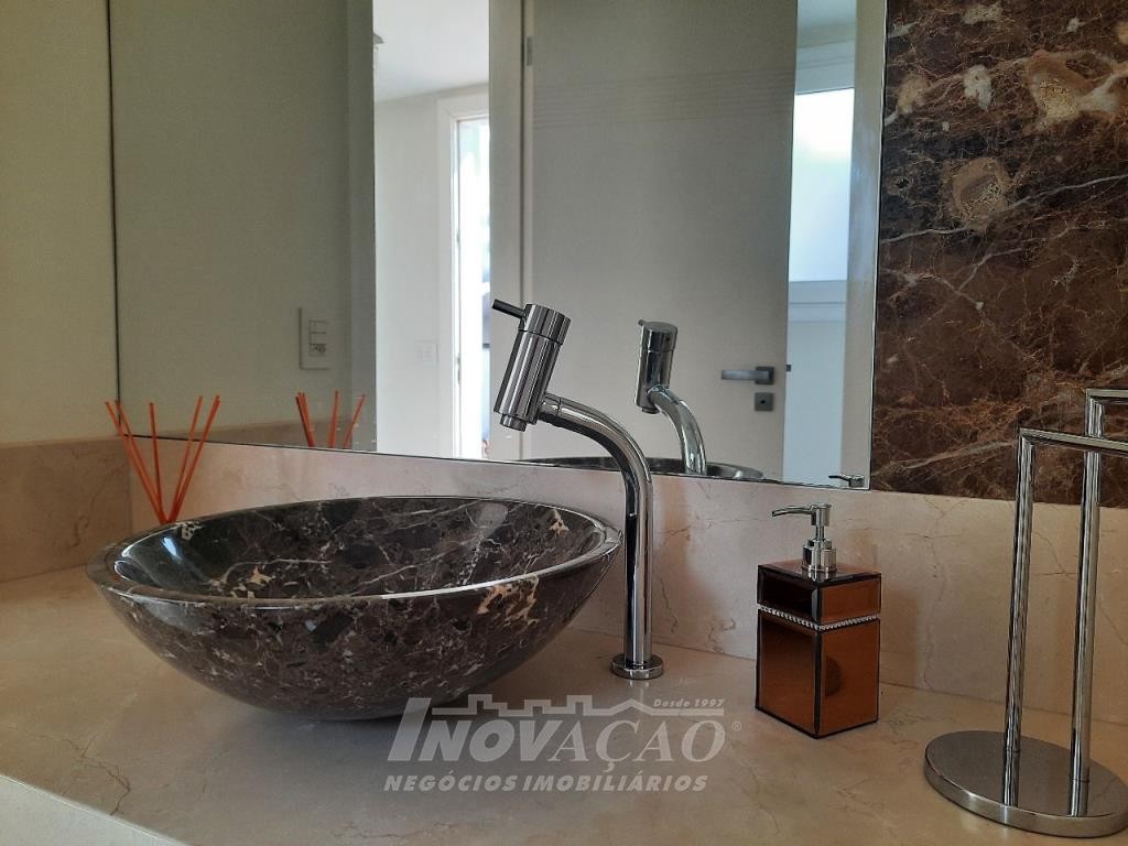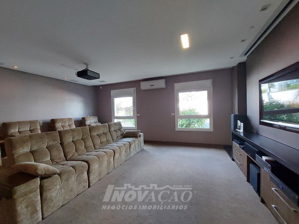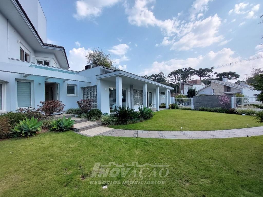 Imobiliária Inovação venda casa com 4 dormitórios, sendo 1 suíte e 1 suíte máster com closet duplo, banheiro com jacuzzi, cuba e chuveiros duplos. Amplo estar social integrado com jantar e sala TV com lareira, lavabo, hall de entrada, escritório, sala de cinema e 2 banheiros sociais. Garagem para 4 carros, espaço gourmet, cozinha copa e área de serviço. Área privativa: 552,00m².
