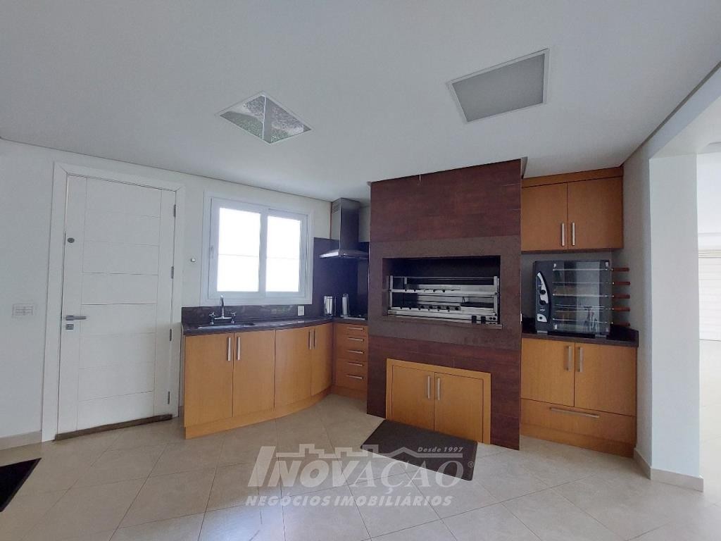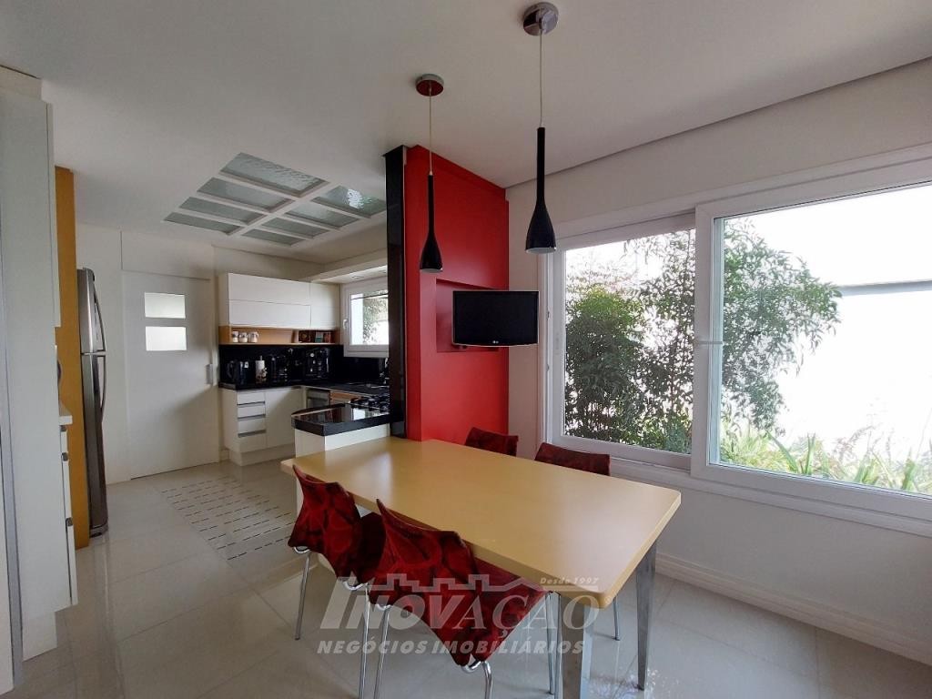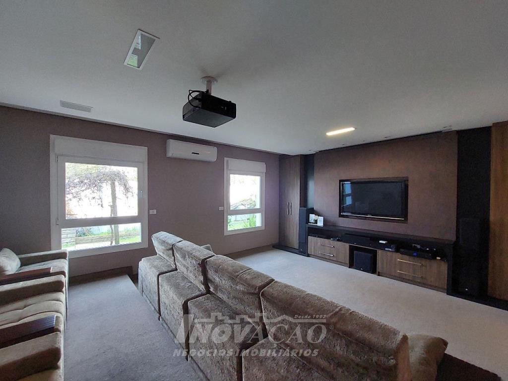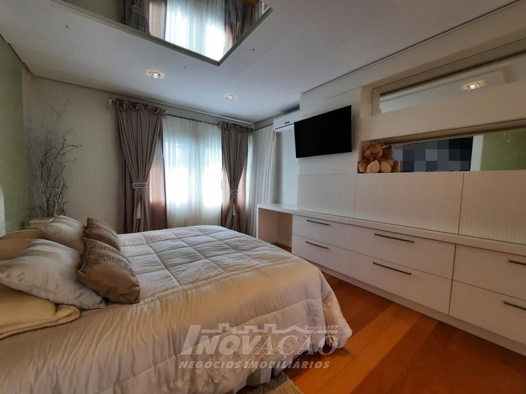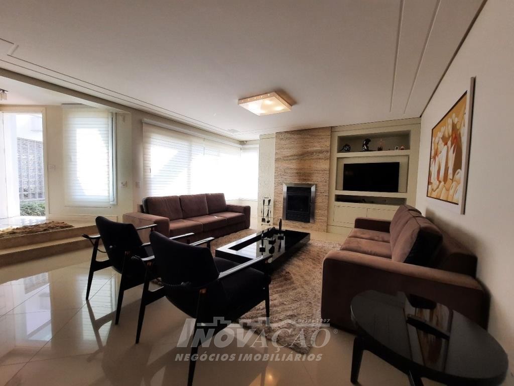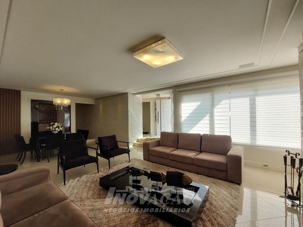 Imobiliária Inovação venda casa com 4 dormitórios, sendo 1 suíte e 1 suíte máster com closet duplo, banheiro com jacuzzi, cuba e chuveiros duplos. Amplo estar social integrado com jantar e sala TV com lareira, lavabo, hall de entrada, escritório, sala de cinema e 2 banheiros sociais. Garagem para 4 carros, espaço gourmet, cozinha copa e área de serviço. Área privativa: 552,00m².