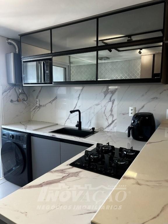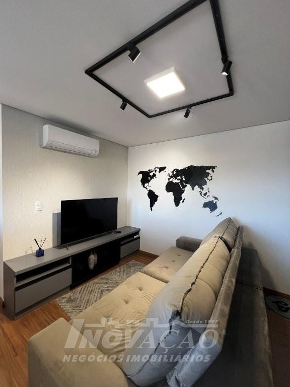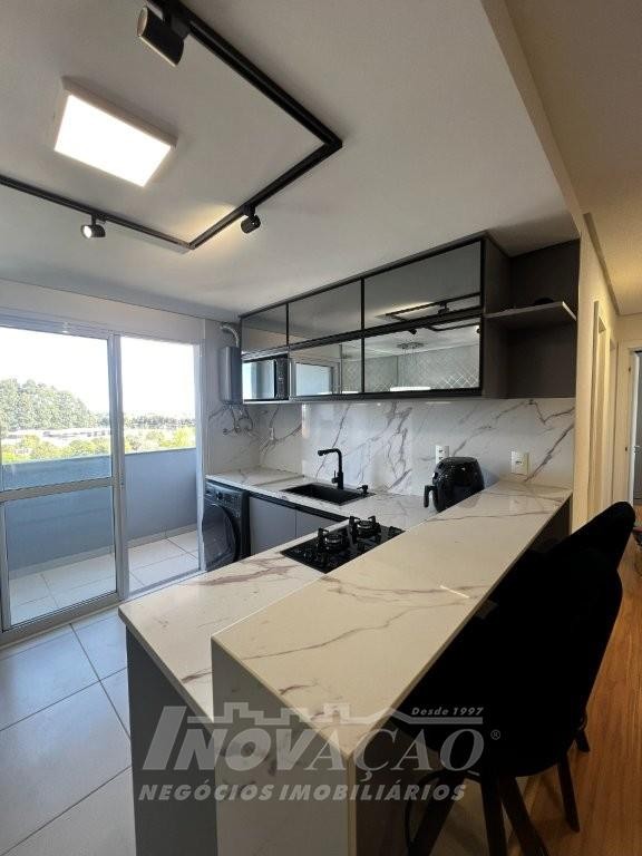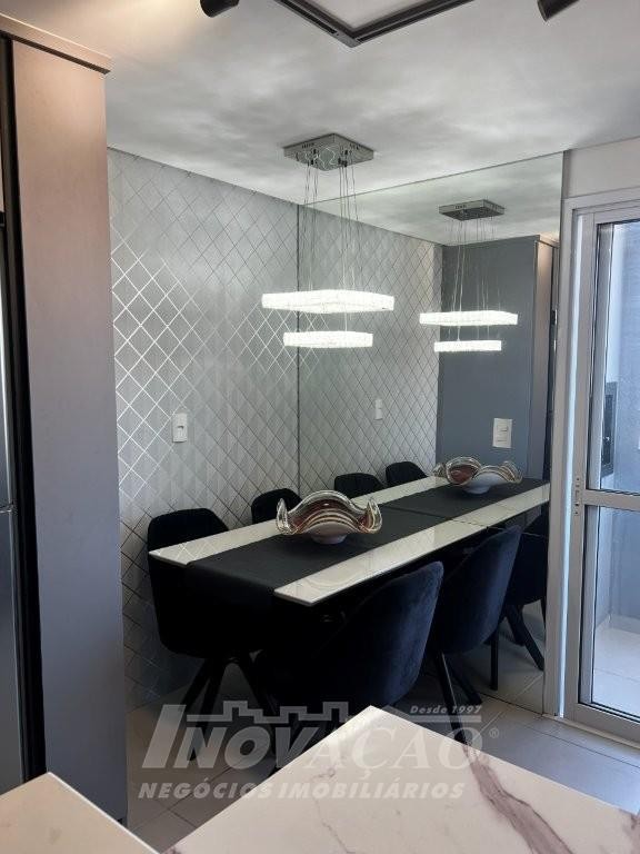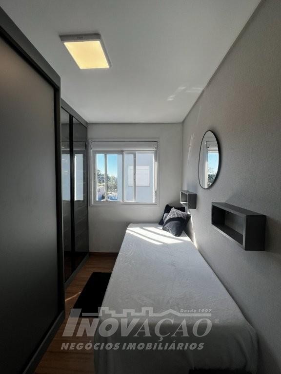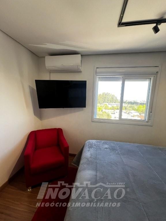 Imobiliária Inovação, vende em Caxias do Sul, bairro Desvio Rizzo, apartamento totalmente mobiliado, com três dormitórios sala, cozinha, área de serviço, banheiro, sacada, garagem para um carro.