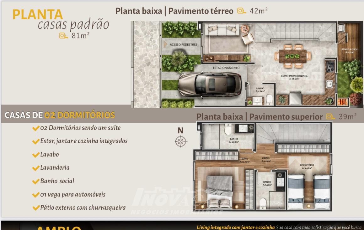 Imobiliária Inovação de Caxias do Sul vende sobrados duplex em construção no Bairro Jardim Itália em uma regiao tranquila e com excelente infraestrutura Sobrados com entrada individual com 2 dormitórios (sendo 1 suíte), banheiro social, lavabo, lavanderia, estar, jantar e cozinha integrados, 1 vaga de garagem, pátio externo com churrasqueira, espera para agua quente e ar condicionado.