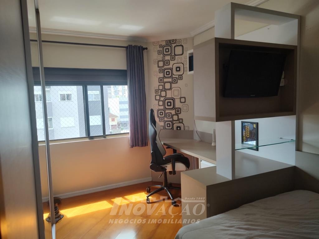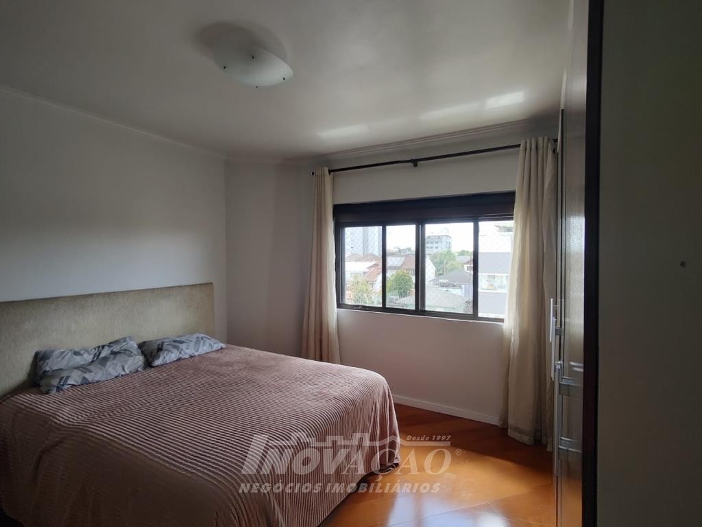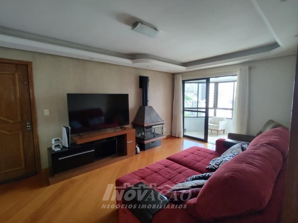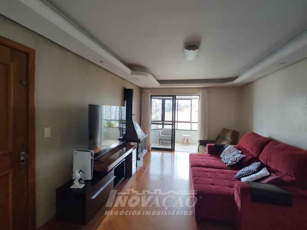 Inovação Negócios Imobiliários vende apartamento, amplo e bem localizado, ótima posição solar, composto por três dormitórios sendo uma suite, hall de entrada, sala com sacada e floreiras, cozinha e área de serviço separadas, um box de garagem com possibilidade de dois carros pequenos e uma vaga exclusiva coberta de estacionamento. Prédio pequeno rua calma, todo cercado e murado com cerca elétrica e um amplo espaço na entrada do prédio com jardim.