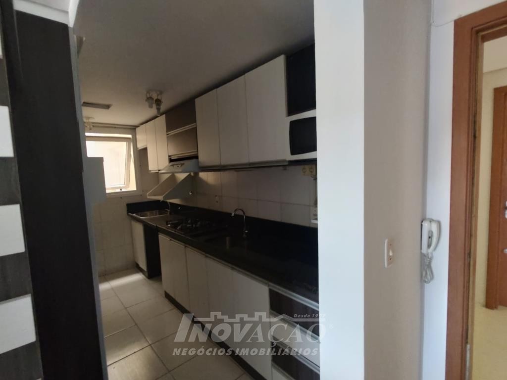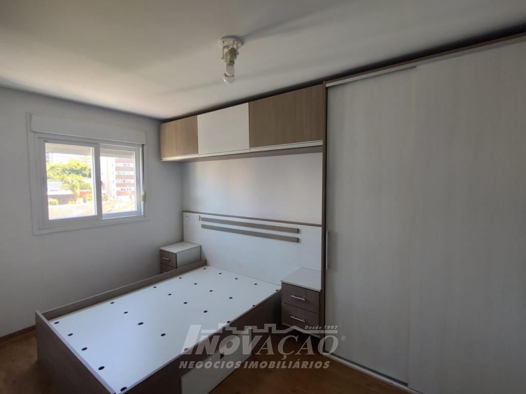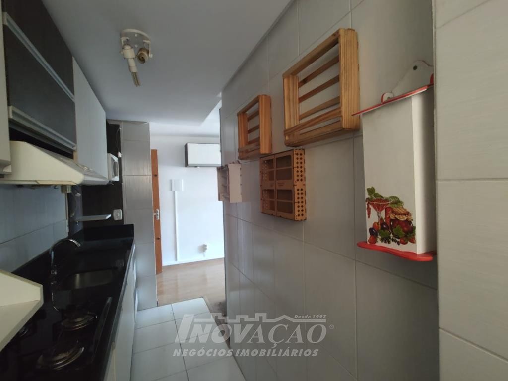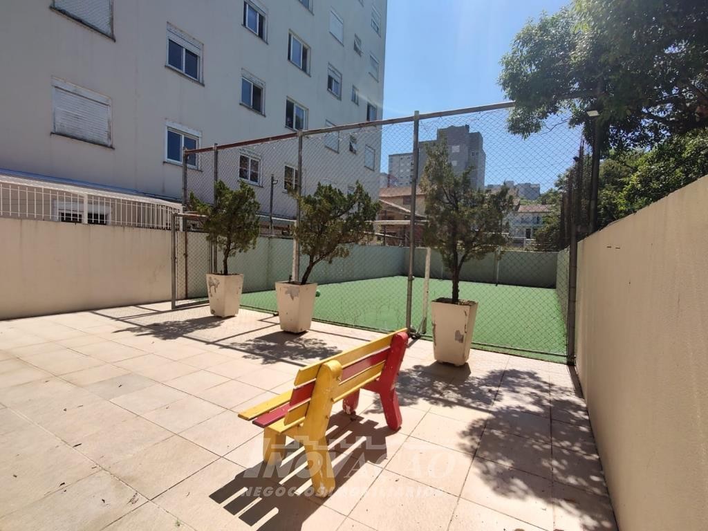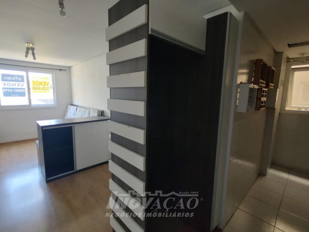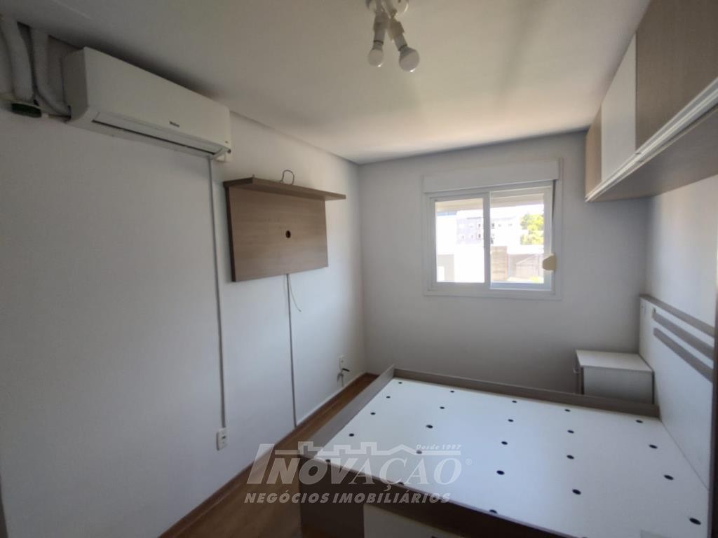 Inovação Negócios Imobiliários vende apartamento semimobiliado, no bairro Charqueadas próximo ao Shopping Villagio, com dois dormitórios, banheiro social, sala de estar e jantar, cozinha e área de serviço integradas, dois splits, esquadrias de alumínio, dois salões de festas, quadra de esporte e um box de garagem.