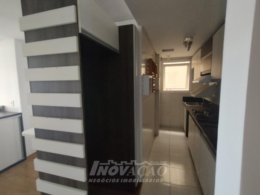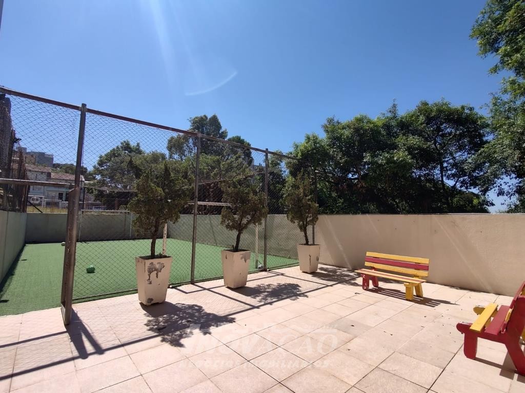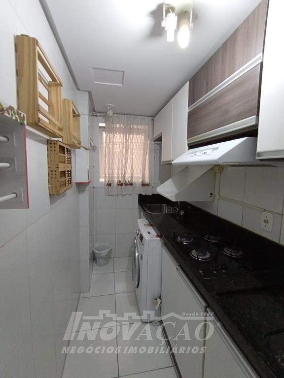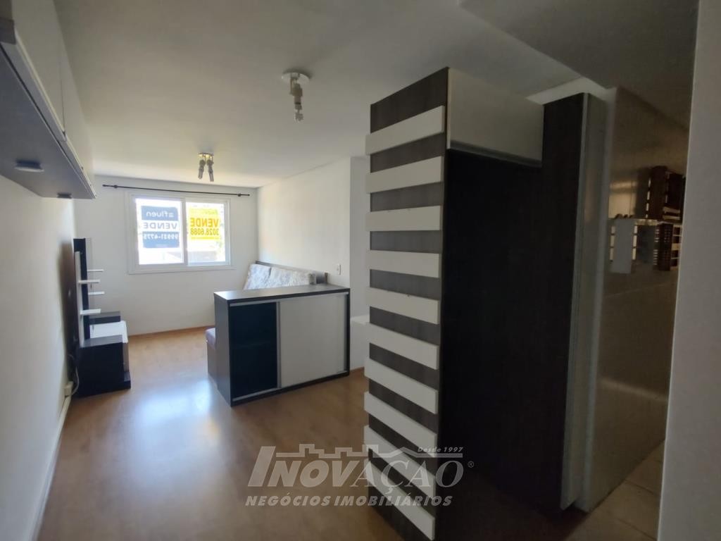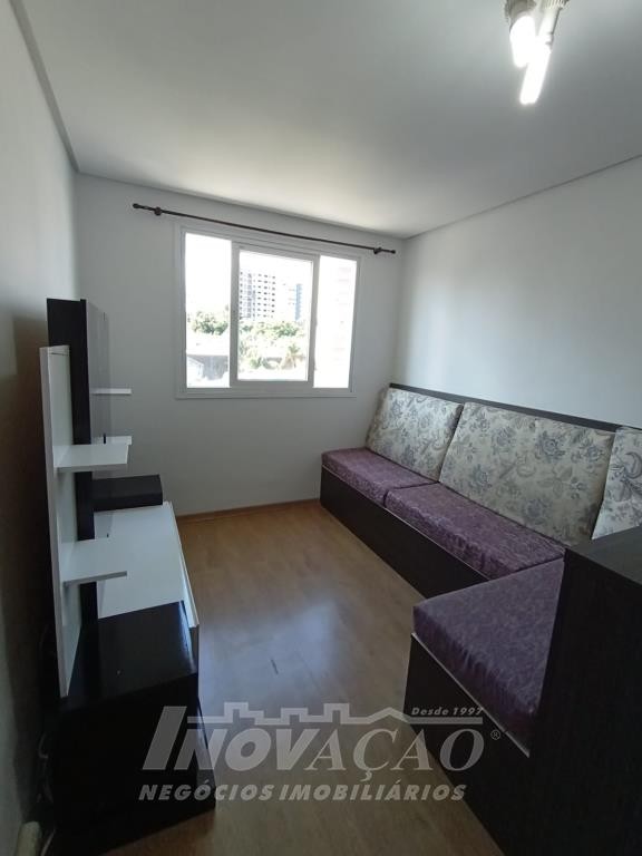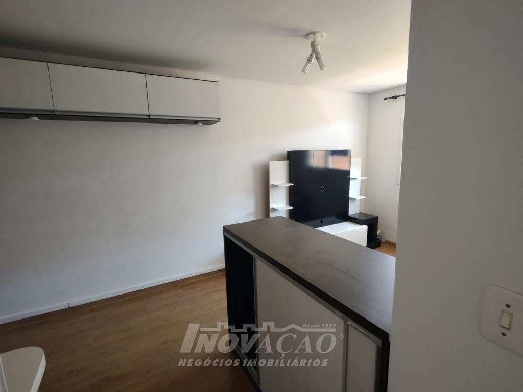 Inovação Negócios Imobiliários vende apartamento semimobiliado, no bairro Charqueadas próximo ao Shopping Villagio, com dois dormitórios, banheiro social, sala de estar e jantar, cozinha e área de serviço integradas, dois splits, esquadrias de alumínio, dois salões de festas, quadra de esporte e um box de garagem.