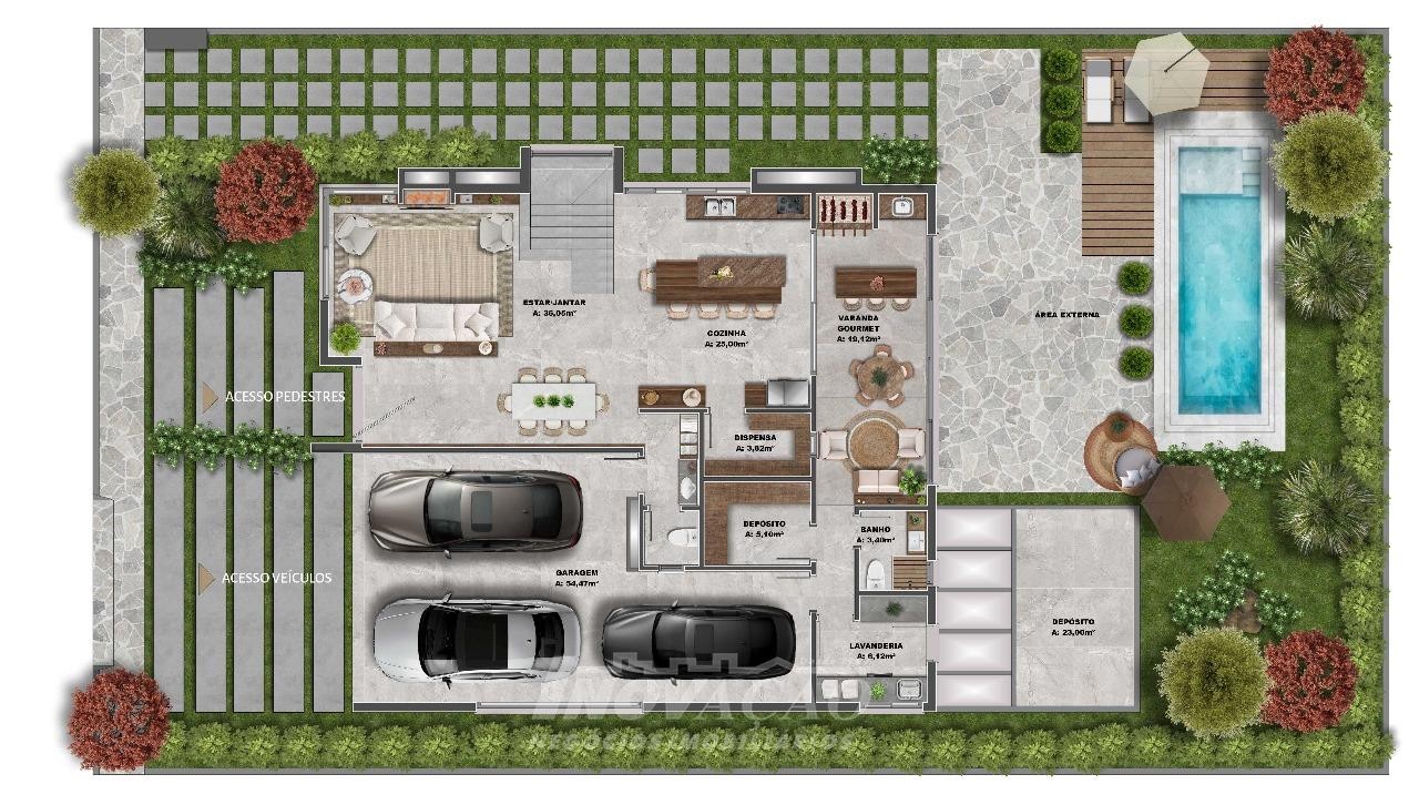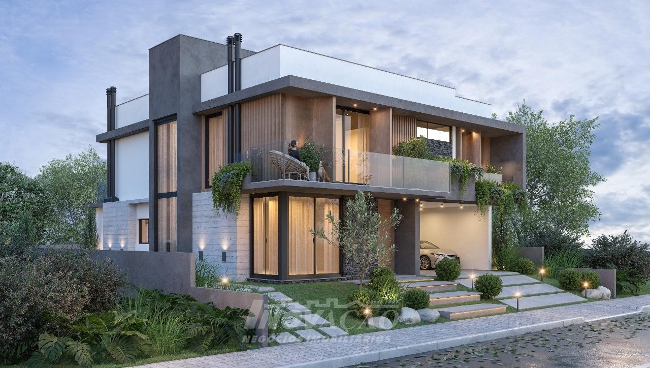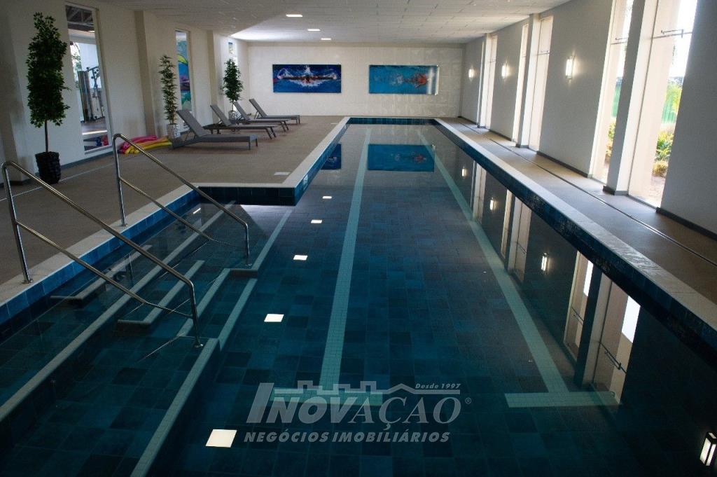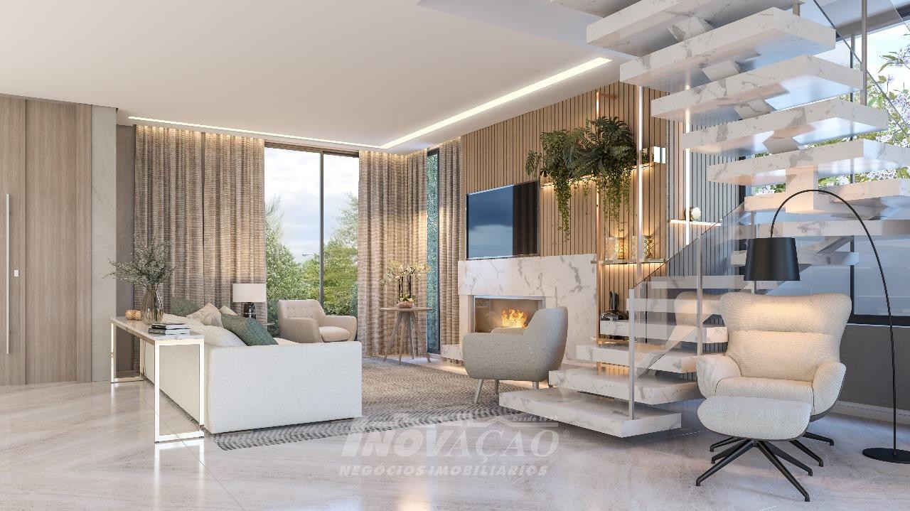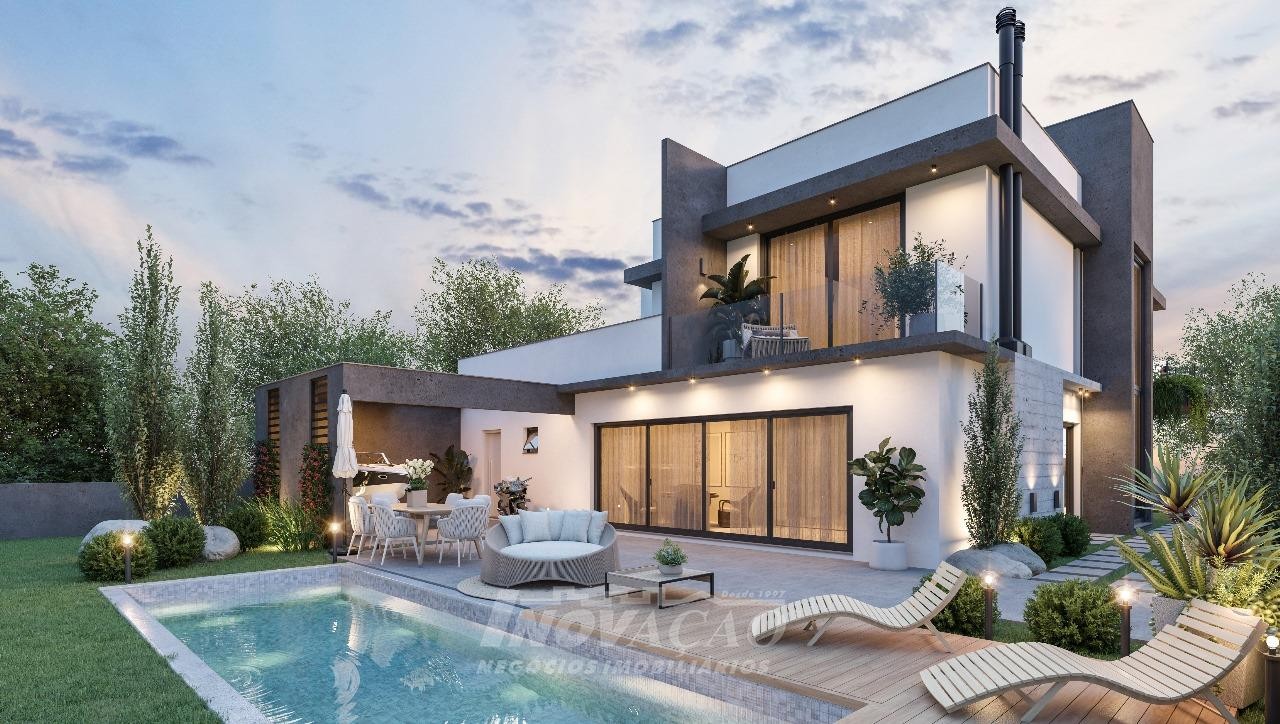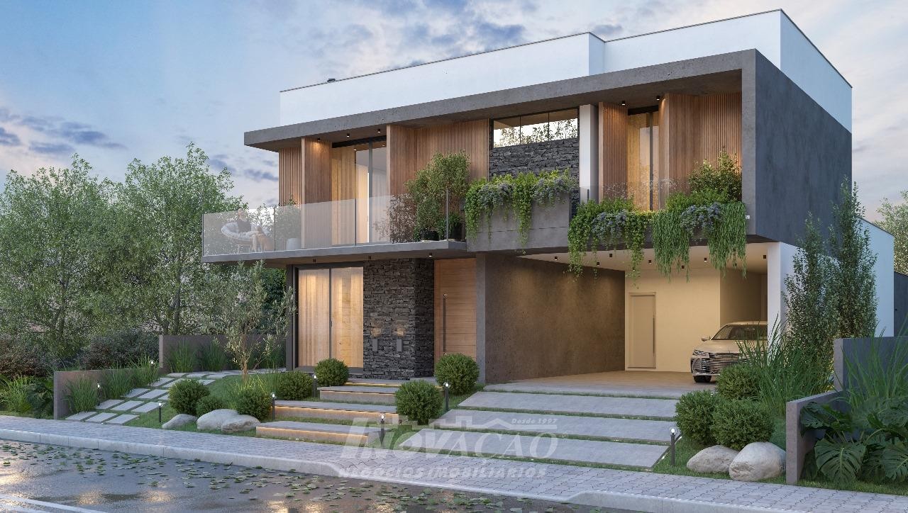 Imobiliária Inovação vende casa alto padrão em condomínio fechado. Pavimento térreo área social, sala de estar, sala de jantar, cozinha, lavanderia, banheiro social, deposito, dependência, varanda gourmet e espaço para a piscina (possui espera para a piscina). Pavimento superior possui 3 suítes, escritório e 3 sacadas. - Piso aquecido na parte superior, vidro duplo na parte superior, esquadrias da cor preta e automação e paisagismo pronto. Garagem para 3 carros.