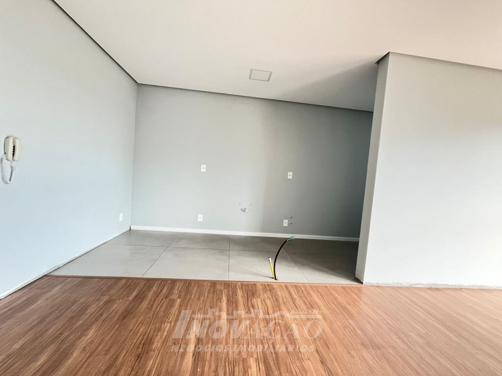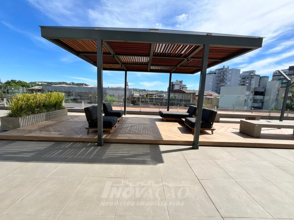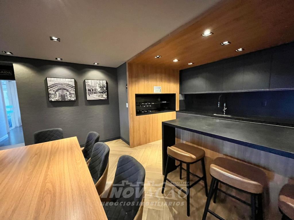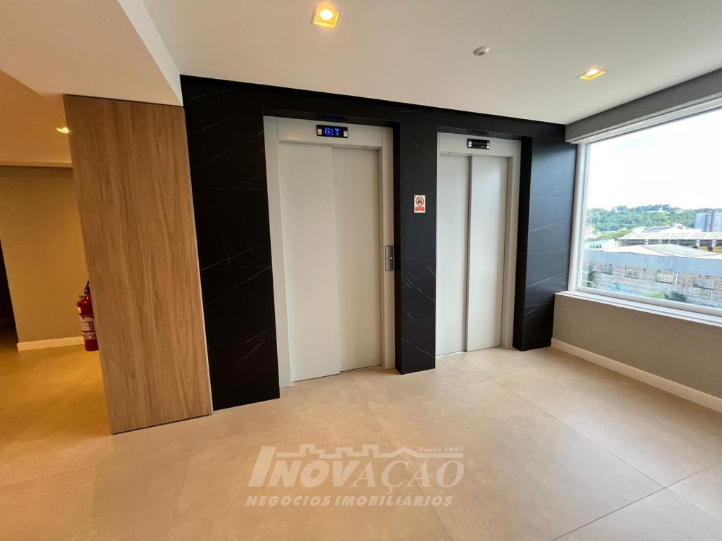 Inovação Negócios Imobiliários aluga em Caxias do Sul, RS, no bairro Santa Catarina, apartamento loft um dormitório, sala, cozinha, área de serviço, banheiro social, e uma vaga de garagem. Empreendimento conta com lojas térreas de serviços diversos, dois subsolos de garagens para os apartamentos, pavimento com estacionamento rotativo, pavimento de uso comum do residencial com: lobby central possuindo dois lavabos, kids place, salão de festas e fitness com amplo terraço, pub gourmet com terraço e área de apoio com banheiro e chuveiro. Posição solar Oeste.