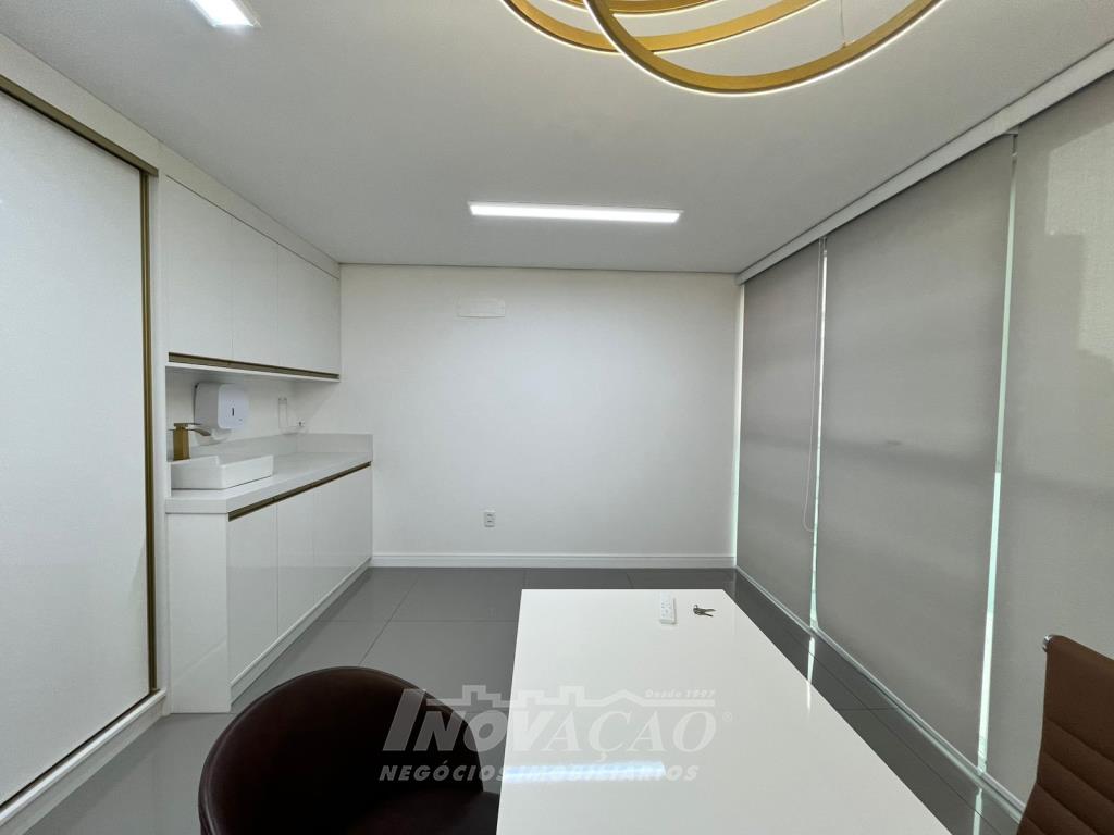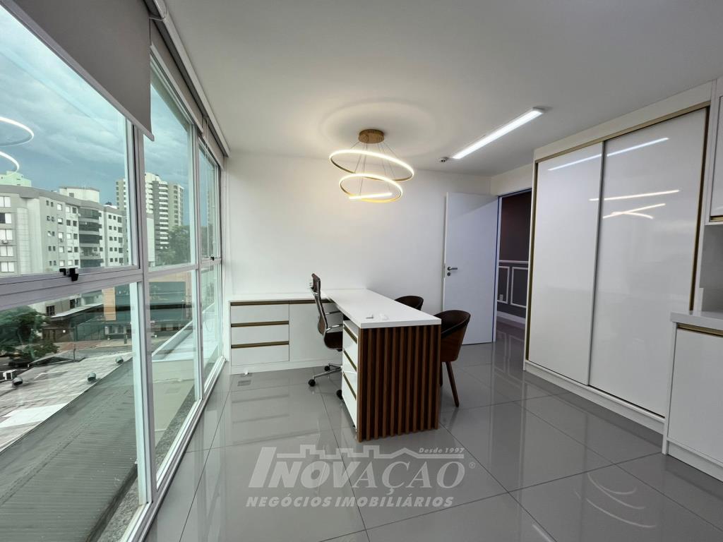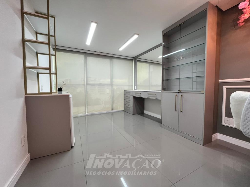 Inovação Negócios Imobiliários vende em Caxias do Sul, RS, no bairro Nossa Sra. de Lourdes, sala aérea mobiliada com Área privativa: 55 m², Área total: 70 m², um banheiro e uma vaga de garagem, a posição solar OESTE, prédio com Salão Gourmet, 3 salas de Reunião, 1 auditório, portaria 24 horas com liberação da entrada por catraca, estacionamento rotativo. para locação, Área privativa: 55 m², Área total: 70 m².