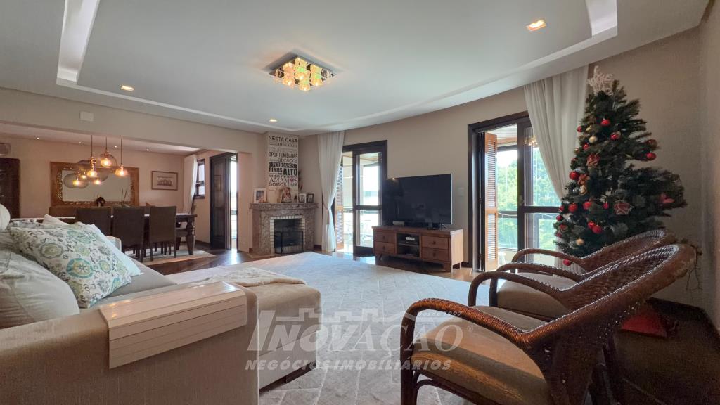 Imobiliária Inovação vende apartamento amplo e sofisticado com 203 m² privativos. Residencial conta com 01 apartamento por andar, elevador codificado. Apartamento contém 03 dormitórios, sendo 02 suítes, 03 vagas de garagens, além de uma sacada ampla que valoriza a iluminação natural e a ventilação. A área social dispõe de sala de estar com lareira, integrada e com acesso direto à sacada, proporcionando conforto, elegância e bem-estar em todos os ambientes. Um imóvel pensado para quem busca espaço, aconchego e qualidade de vida.