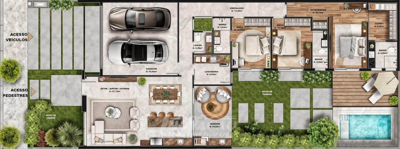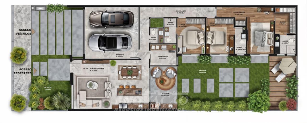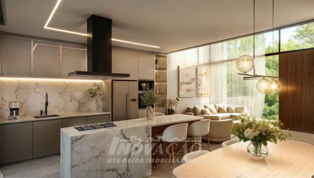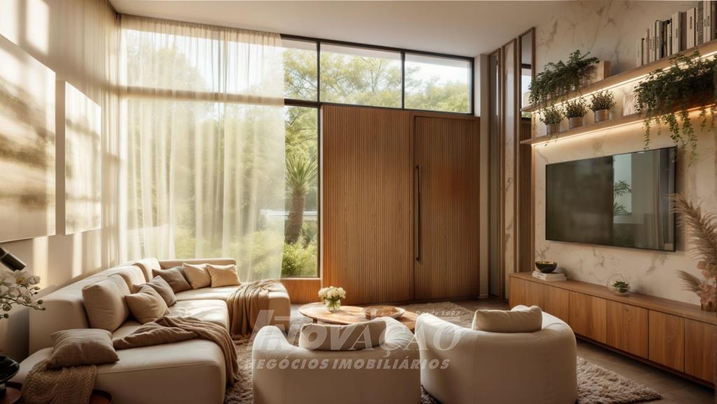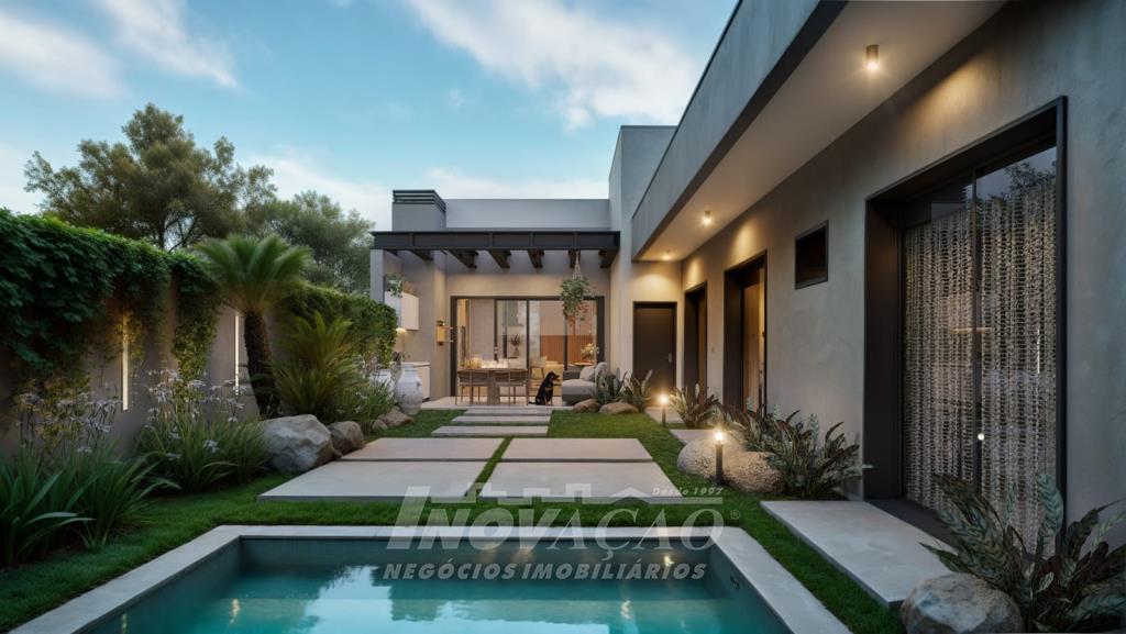 Imobiliária Inovação vende excelente casa térrea, com frente norte, projetada para oferecer conforto, modernidade e funcionalidade. O imóvel conta com 03 suítes, sendo 01 suíte master com closet, amplo living integrado ao espaço gourmet, com acesso direto ao pátio dos fundos, além de 04 vagas de garagem. A casa apresenta fachada contemporânea e alto padrão construtivo, com esquadrias em PVC, vidros duplos e persianas automatizadas, garantindo melhor isolamento térmico e acústico. Possui ainda espera para split, água quente e espera para piscina, ideal para quem busca qualidade de vida e valorização do imóvel.