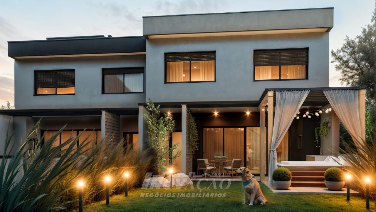 Imobiliária Inovação vende excelente residência de alto padrão, com 03 dormitórios, sendo 01 suíte com closet, projetada para oferecer conforto, sofisticação e funcionalidade. O imóvel conta com 164 m² de área construída, distribuídos em 164 m² de área privativa, apresentando fachada contemporânea e acabamentos diferenciados, que conferem personalidade e estilo exclusivos a cada unidade. O alto padrão construtivo é evidenciado pelas amplas aberturas, fachada revestida em porcelanato e pedra natural, proporcionando elegância, iluminação natural e valorização estética. Nos fundos, a casa dispõe de um amplo pátio, com espaço gourmet, pergolado e espera para hidromassagem, ideal para momentos de lazer e convivência.