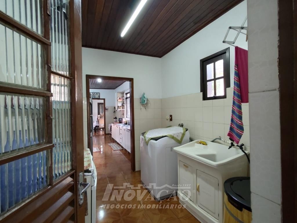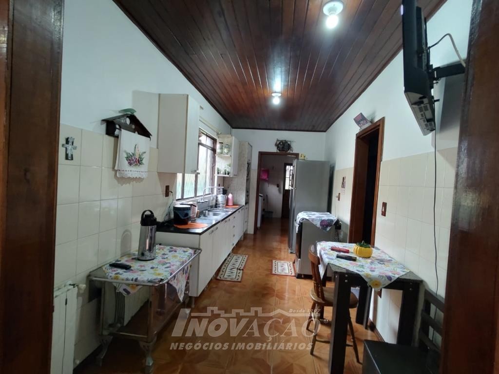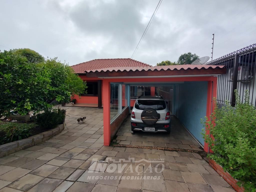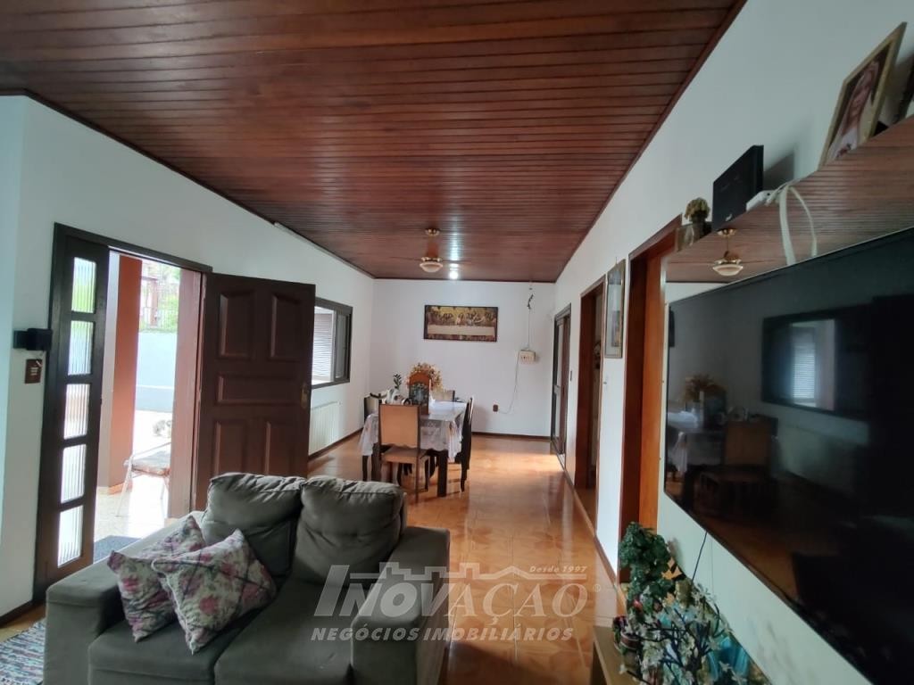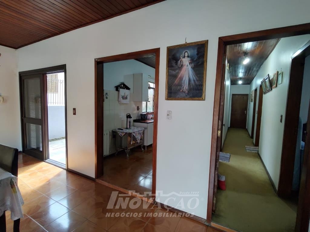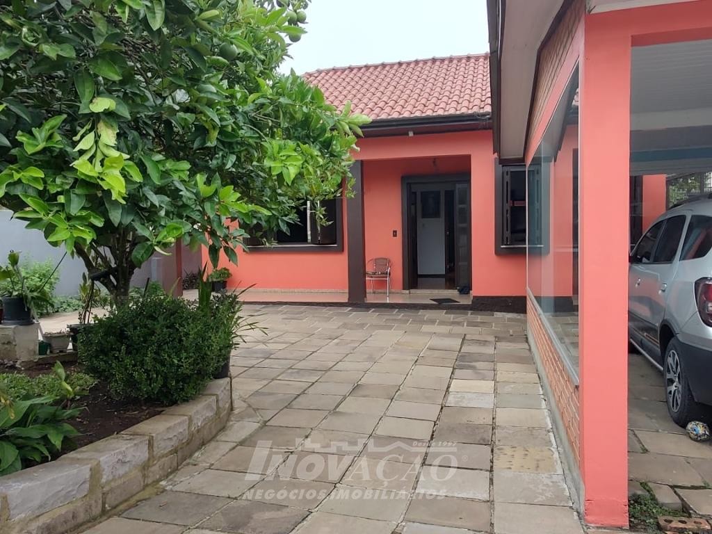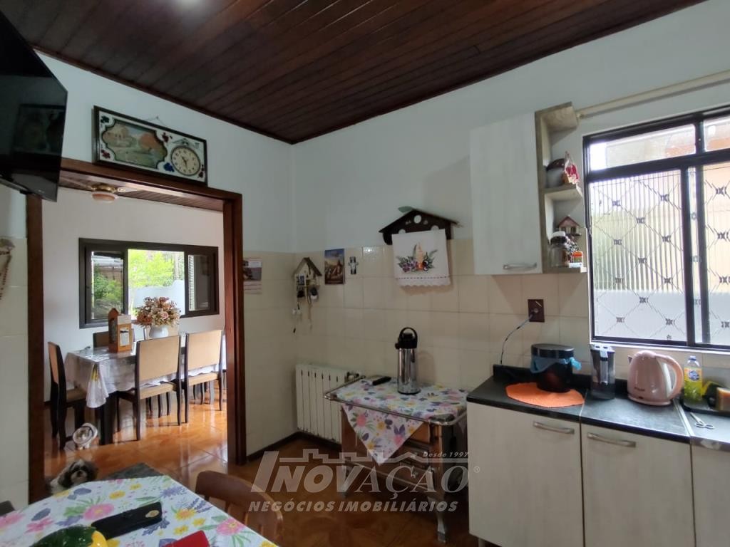 Inovação Negócios Imobiliários vende casa no Bairro Desvio Rizzo, com três dormitórios, sendo um suite, banheiro social, sala estar e jantar, cozinha, área de serviço e 01 box de garagem, com possibilidade para estacionamento de dois a três veículos. Possui pátio e horta nos fundos. Conta ainda com poço de água com vertente natural.