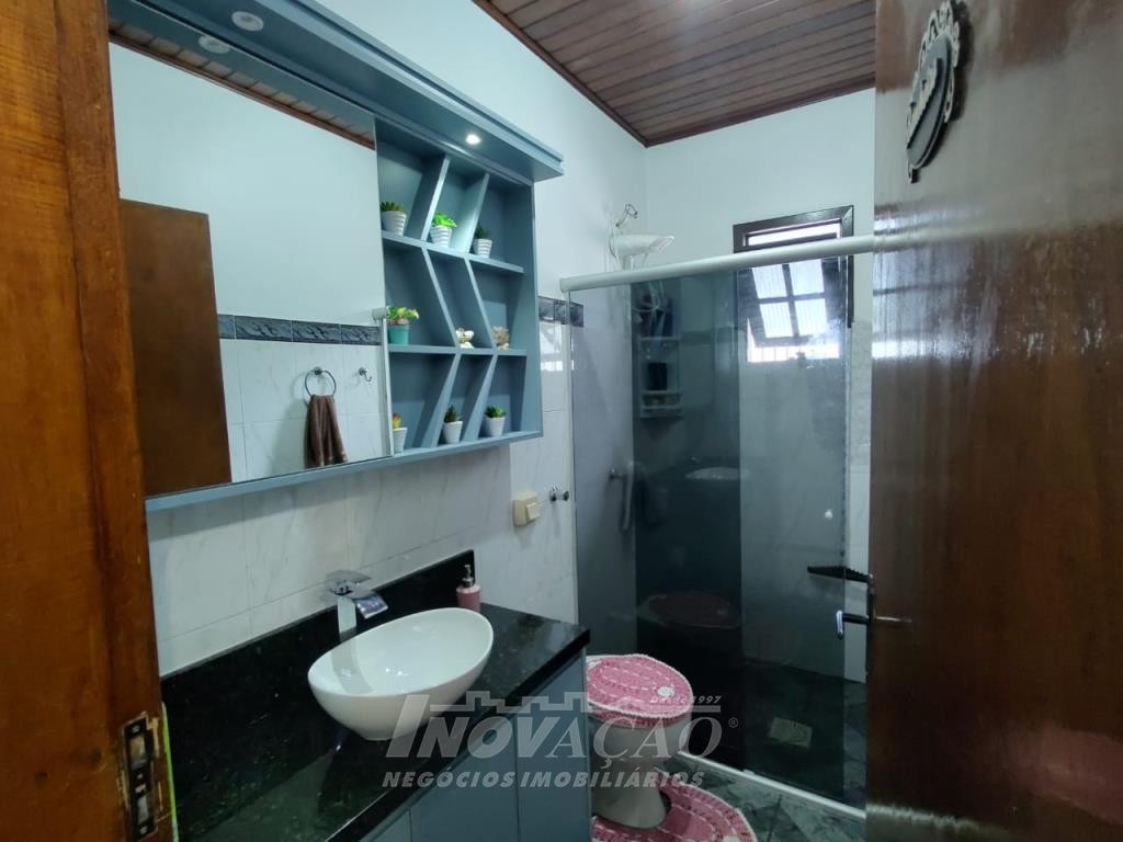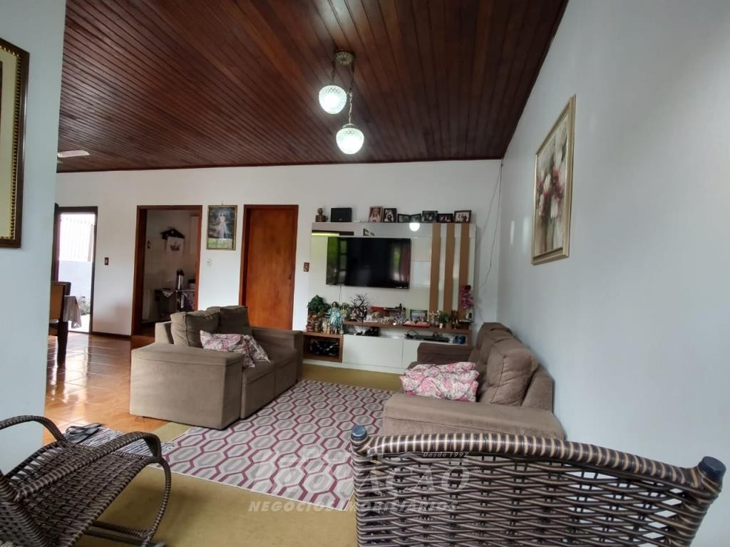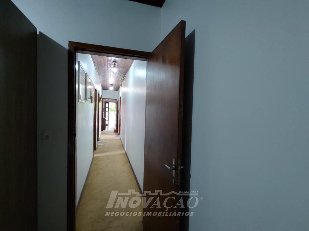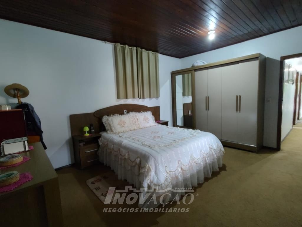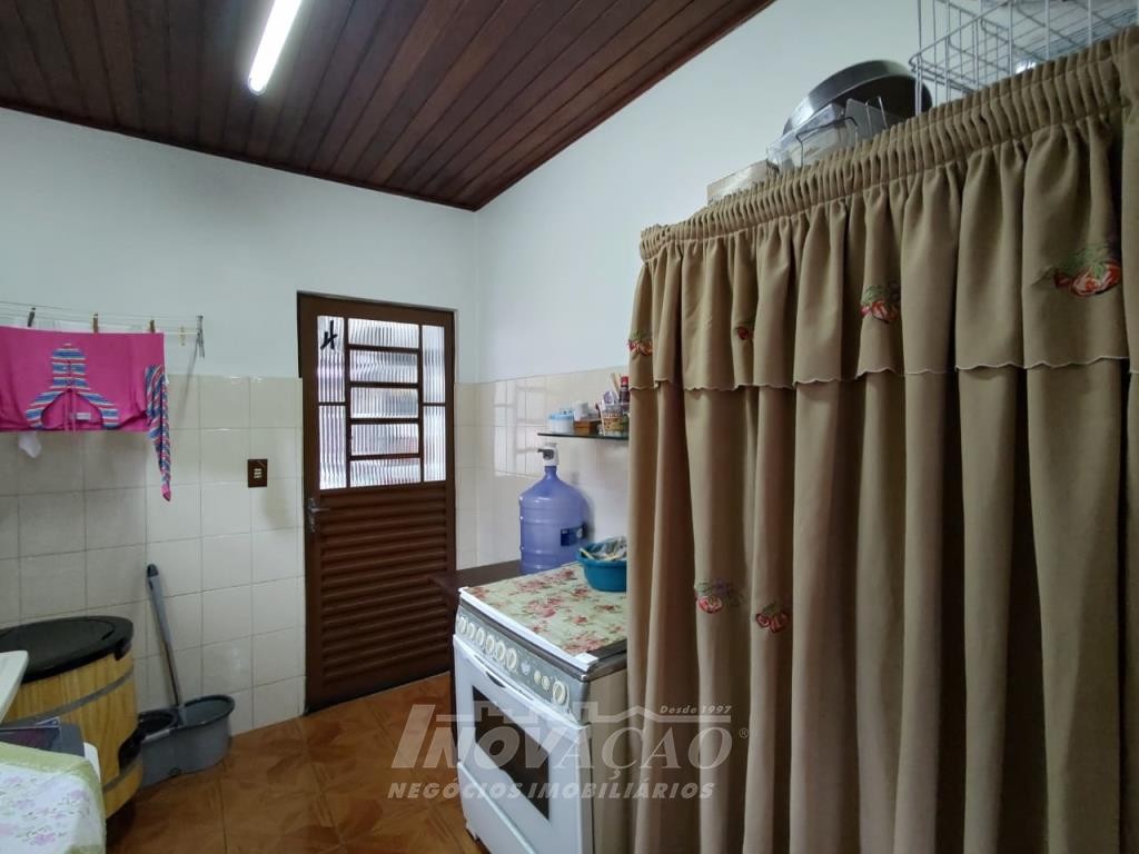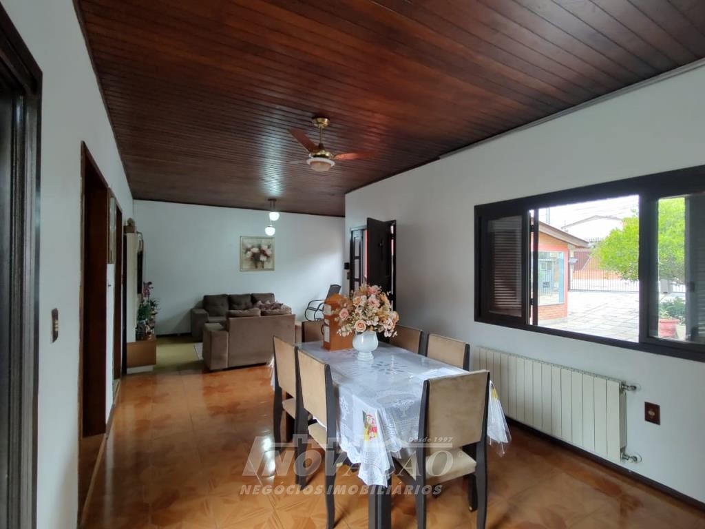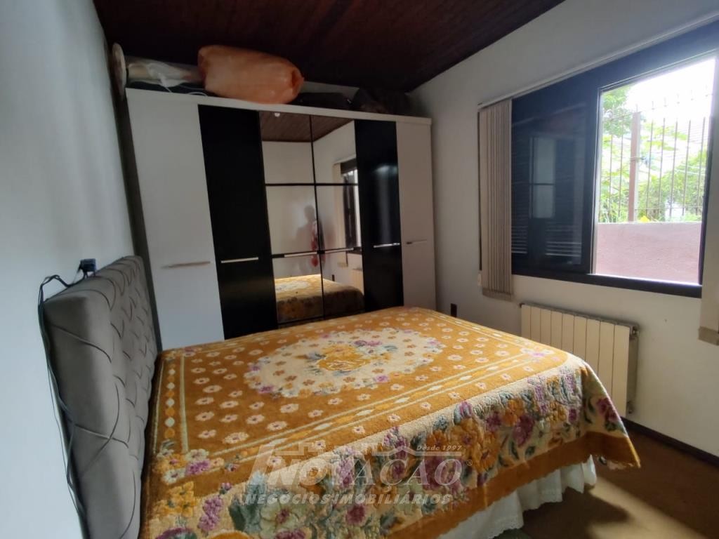 Inovação Negócios Imobiliários vende casa no Bairro Desvio Rizzo, com três dormitórios, sendo um suite, banheiro social, sala estar e jantar, cozinha, área de serviço e 01 box de garagem, com possibilidade para estacionamento de dois a três veículos. Possui pátio e horta nos fundos. Conta ainda com poço de água com vertente natural.