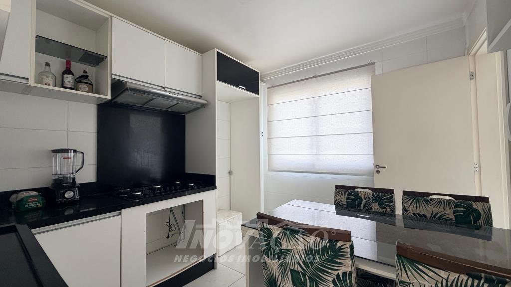 Imobiliária Inovação vende sobrado semimobiliado à venda no bairro Desvio Rizzo, com 74m² de área privativa, ideal para quem busca conforto, praticidade e excelente custo-benefício. O imóvel conta com 02 dormitórios bem distribuídos, proporcionando ambientes aconchegantes e funcionais. No pavimento térreo, dispõe de sala de estar integrada à cozinha, criando um espaço moderno e convidativo para o dia a dia. A cozinha permanece com móveis sob medida, agregando organização e otimização de espaço. Nos fundos, destaque para a área com churrasqueira, perfeita para momentos de lazer e confraternização com família e amigos. O imóvel também possui lavabo, banheiro social e área de serviço.