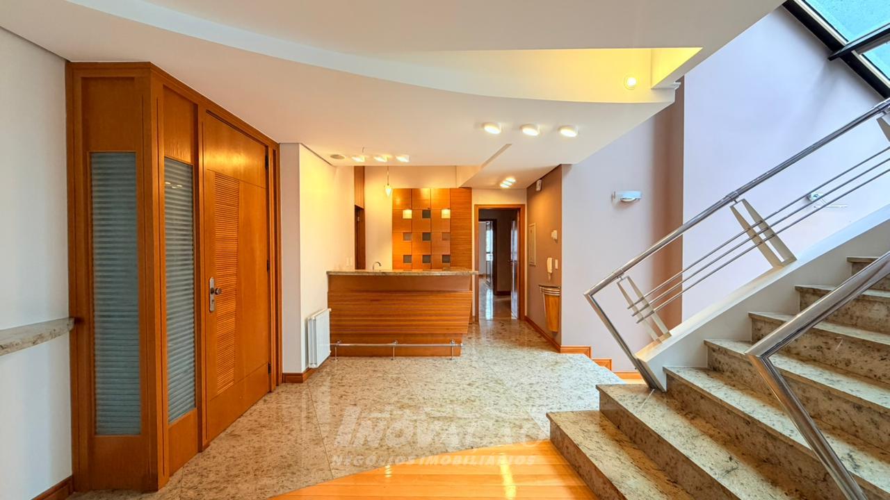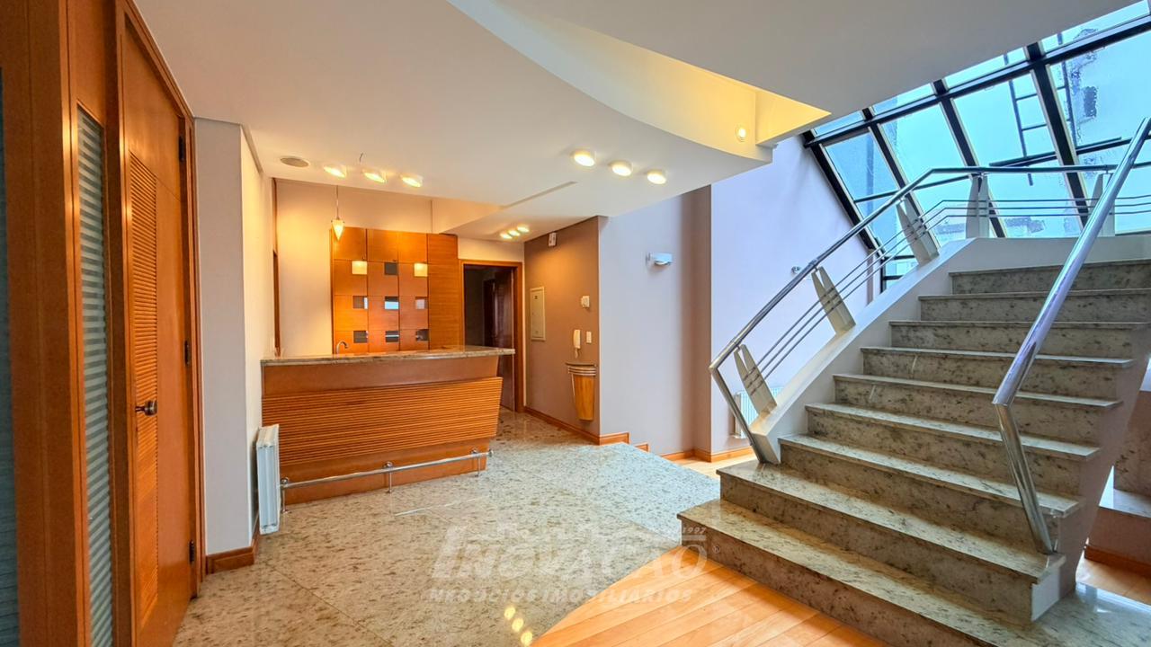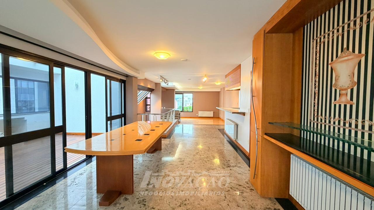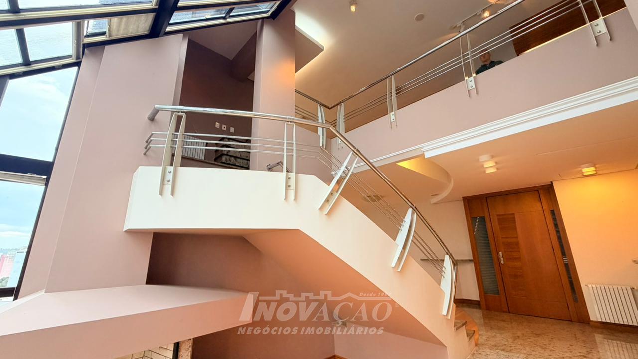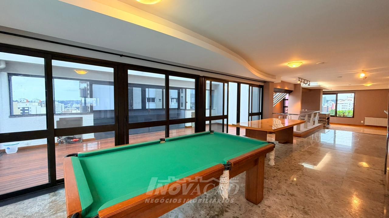 Imobiliária Inovação vende excelente cobertura triplex com 423 m² de área privativa, oferecendo ambientes amplos, elegantes e perfeitos para quem busca conforto, exclusividade e uma área de lazer privativa em uma das regiões mais valorizadas da cidade. No primeiro pavimento, o imóvel conta com 4 suítes, sendo 1 suíte máster com banheira de hidromassagem, proporcionando ainda mais conforto e privacidade. Possui também estar social com sacada, sala de estar com lareira, além de área de serviço com banheiro auxiliar. No segundo pavimento, os espaços são ideais para convivência e lazer: sala de estar com lareira, sala de jantar integrada à sala de jogos, escritório, cozinha com churrasqueira, banheiro social, além de piscina e amplo terraço, criando um ambiente perfeito para receber amigos e familiares. O imóvel dispõe ainda de 4 vagas de garagem e depósito, além de estar semimobiliado, agregando praticidade e sofisticação. Uma cobertura única, que reúne amplitude, conforto e lazer privativo, localizada no Bairro São Pelegrino, próximo a diversas comodidades e facilidades do dia a dia.