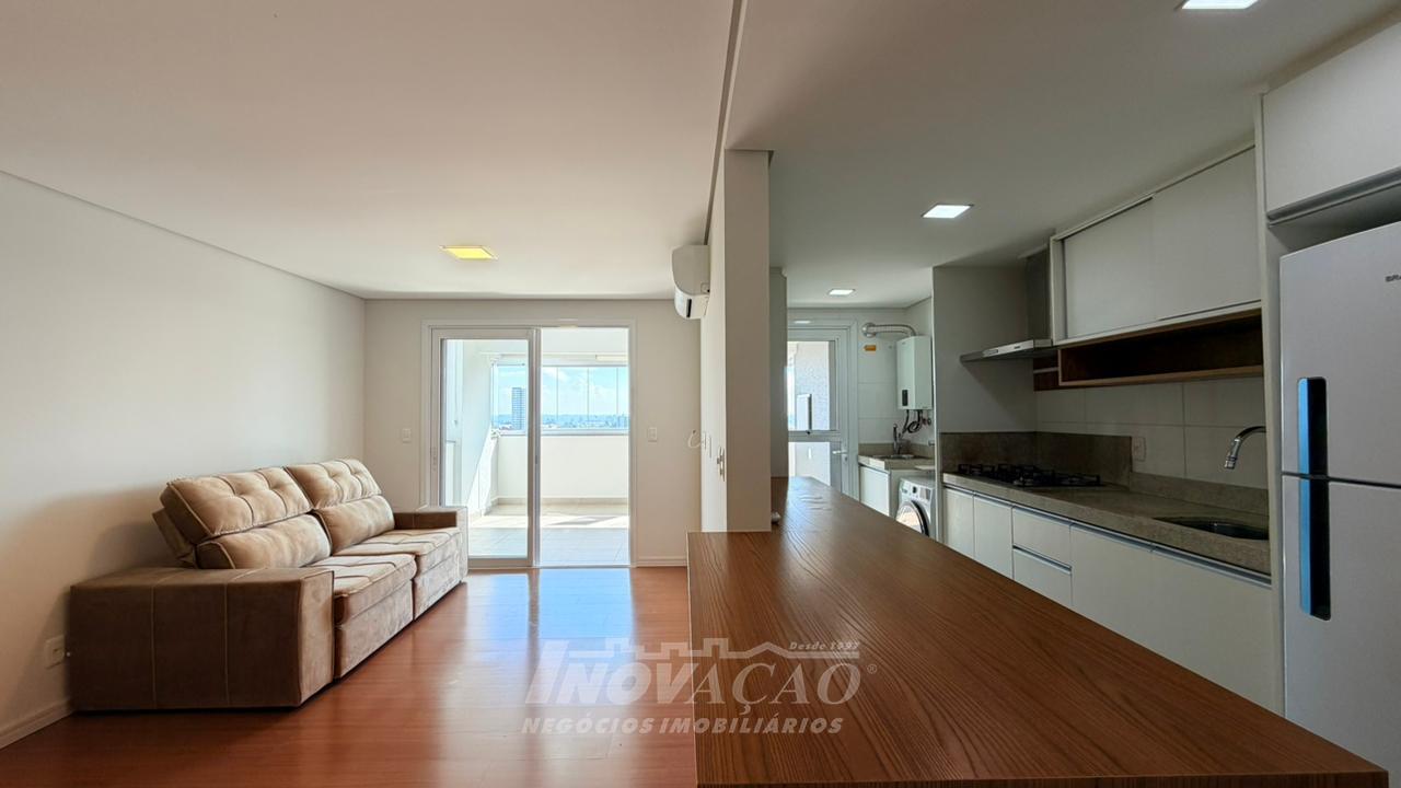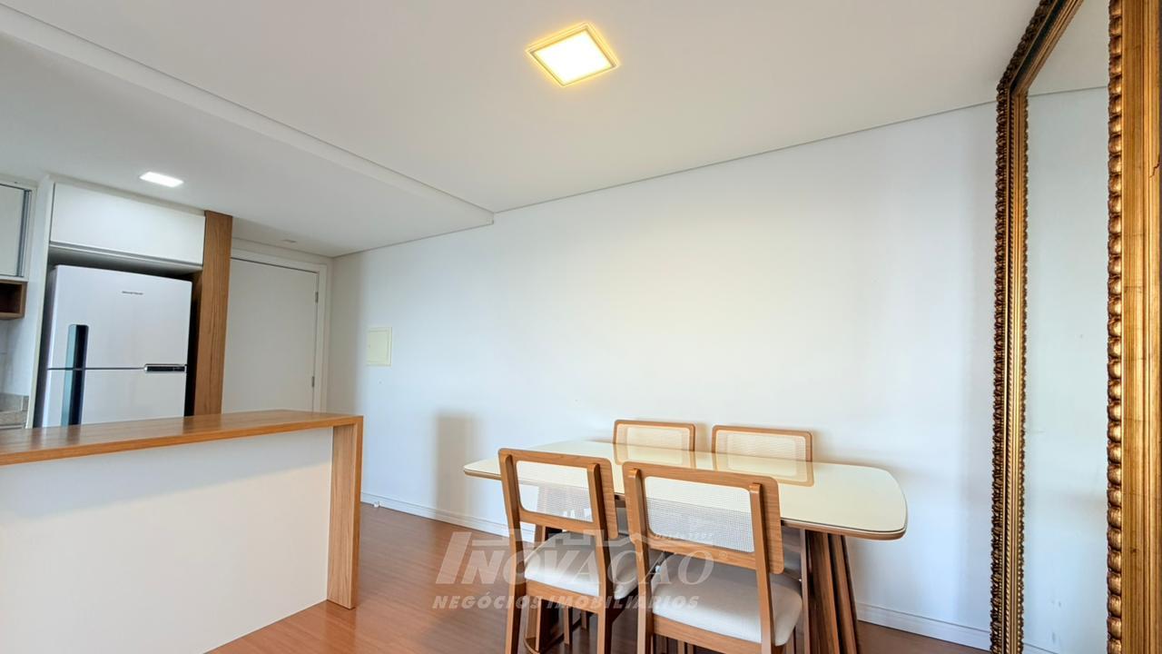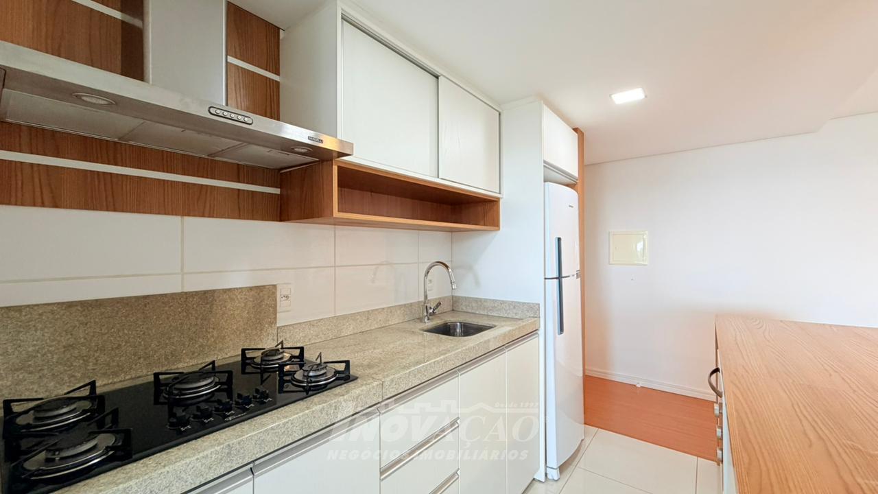 Imobiliária Inovação aluga apartamento semimobiliado no bairro Sanvitto, com excelente padrão de acabamento e localização privilegiada. O imóvel conta com 81m² de área privativa, distribuídos em dois dormitórios, sendo uma suíte, além de sala de estar e jantar integradas, proporcionando um ambiente amplo e aconchegante. A cozinha possui móveis planejados e se conecta à área de serviço. Um dos grandes destaques é a sacada gourmet com churrasqueira, ideal para momentos de lazer e confraternização. O apartamento dispõe ainda de banheiro social e duas vagas de garagem, oferecendo praticidade e conforto no dia a dia. Localizado em uma região valorizada, com fácil acesso a comércios, serviços e principais vias da cidade, é uma excelente opção para quem busca qualidade de vida e conveniência.