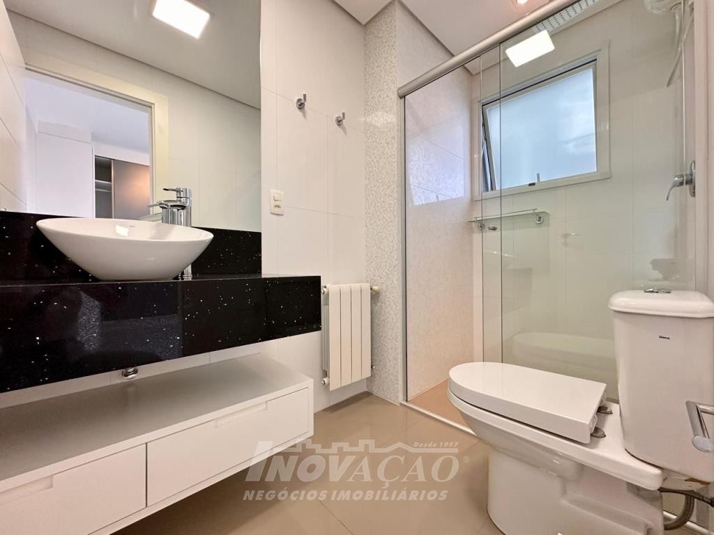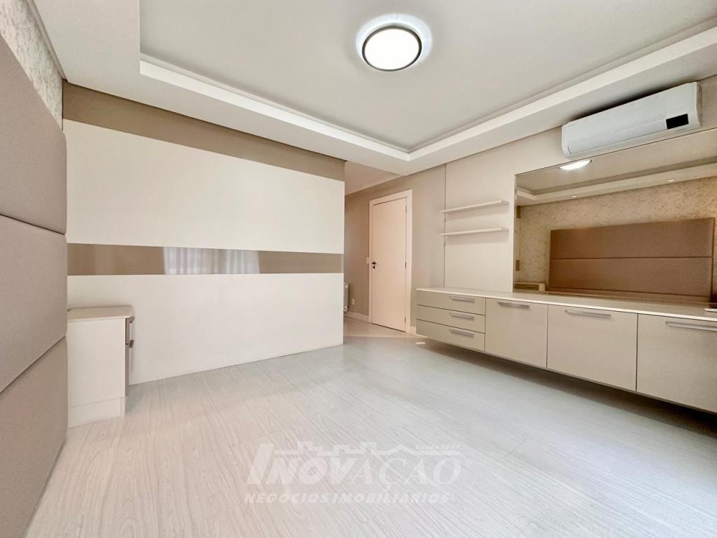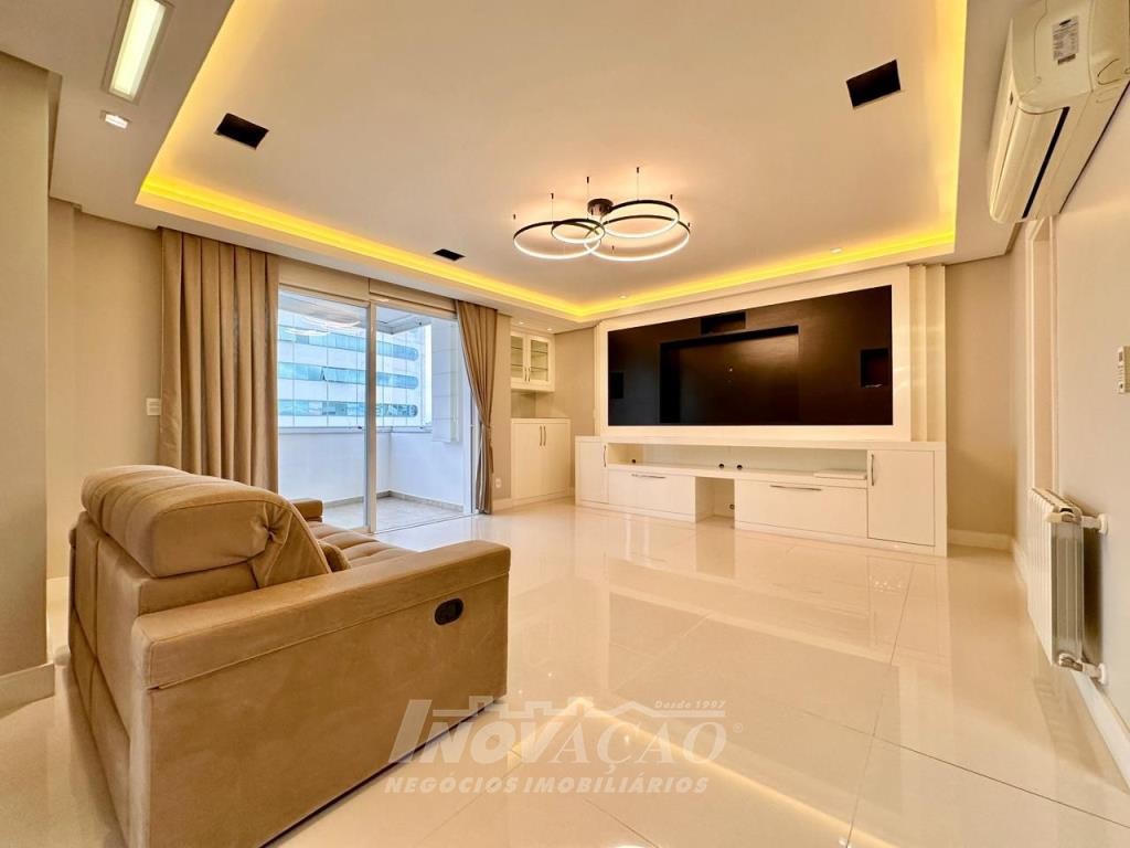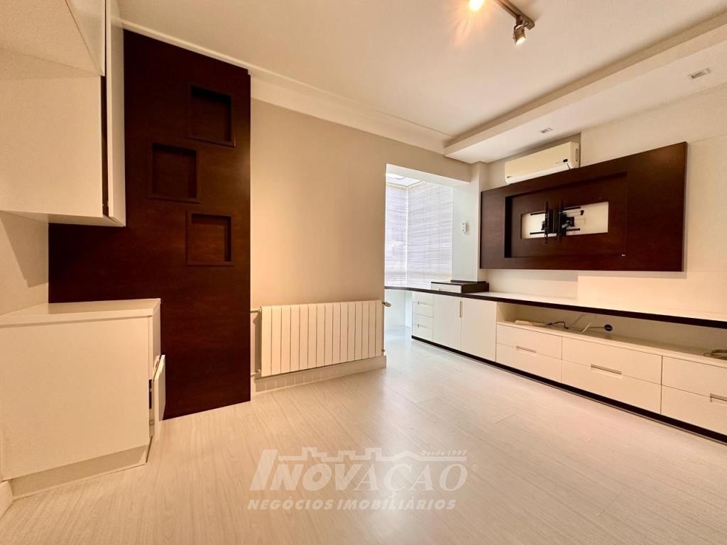 Inovação Negócios Imobiliários Ltda vende em Caxias do Sul no bairro, Villággio Iguatemi, Excelente apartamento sendo um apartamento por andar com elevador, sendo três dormitórios e três suítes, sala ampla com sacada, lavabo, cozinha com churrasqueira, lavanderia, piso em porcelanato e laminado, calefação instalada em todas as peças, rebaixe em gesso, um apartamento por andar, todas as posições solares, frente para a rua, apartamento mobiliado, uma garagem ampla para até três automóveis pequenos.