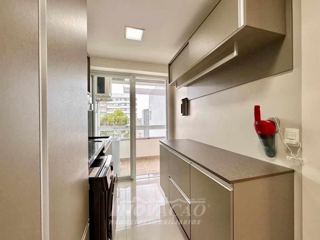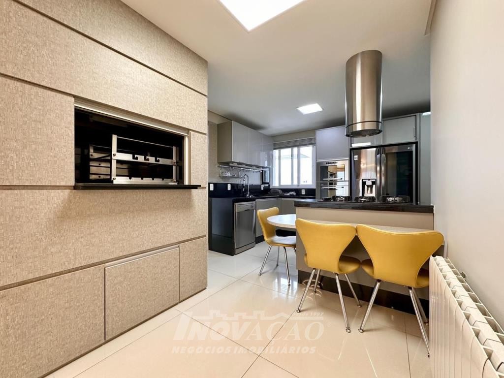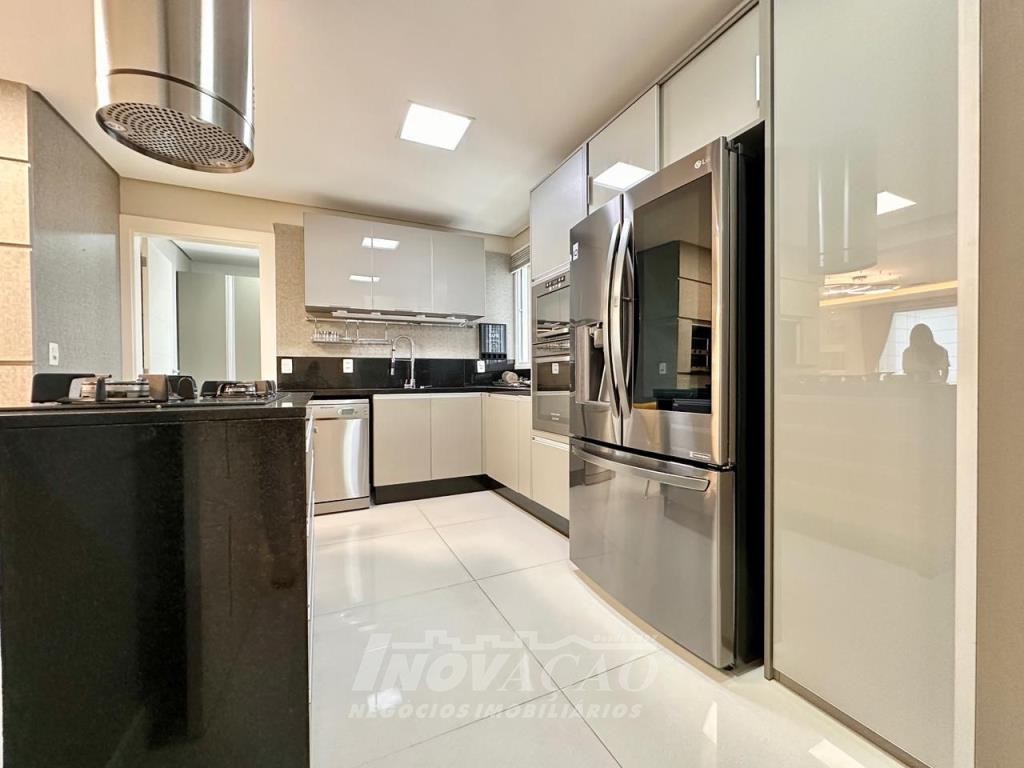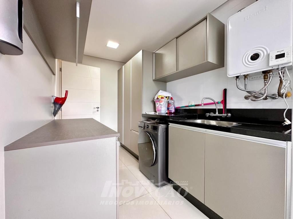 Inovação Negócios Imobiliários Ltda vende em Caxias do Sul no bairro, Villággio Iguatemi, Excelente apartamento sendo um apartamento por andar com elevador, sendo três dormitórios e três suítes, sala ampla com sacada, lavabo, cozinha com churrasqueira, lavanderia, piso em porcelanato e laminado, calefação instalada em todas as peças, rebaixe em gesso, um apartamento por andar, todas as posições solares, frente para a rua, apartamento mobiliado, uma garagem ampla para até três automóveis pequenos.